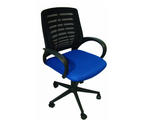 Кресло на колесах Ирис люкс обивка ткань-сетка TW сидушка черный, спинка синий, подлокотники пластик, крестовина пластик, механизм качания