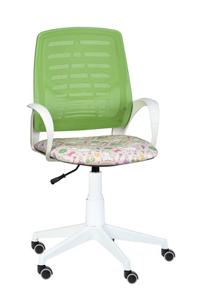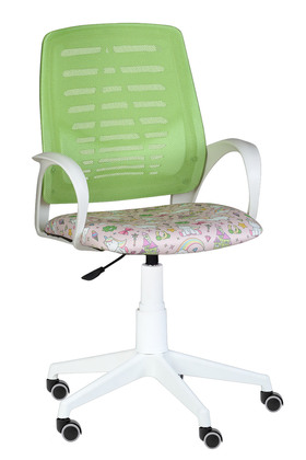 Кресло на колесах Ирис белый каркас, обивка сидушка - ткань саржа единороги, спинка салат, подлокотники пластик, крестовина пластик, без качания
