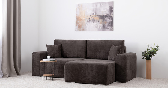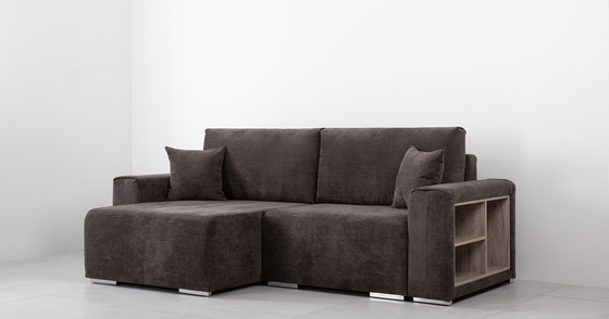 Диван-кровать угловой Оксфорд 711 композиция 2, Muza 06 темно-коричневый, модульная система, сборка на любую сторону