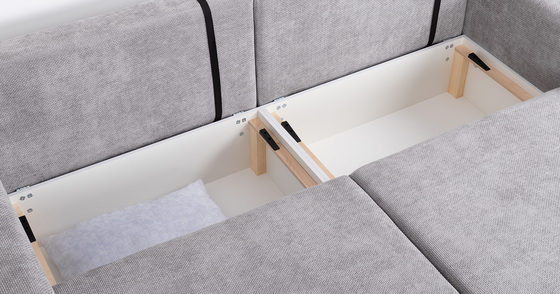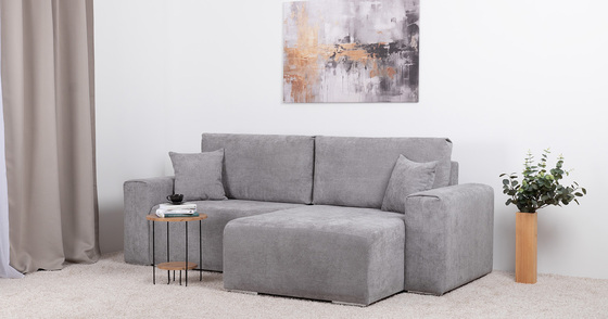 Диван-кровать угловой Тэдди 1506 композиция 2, букле Pique 011 серый, модульная система, сборка на любую сторону