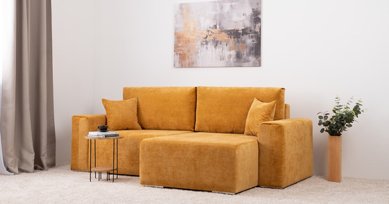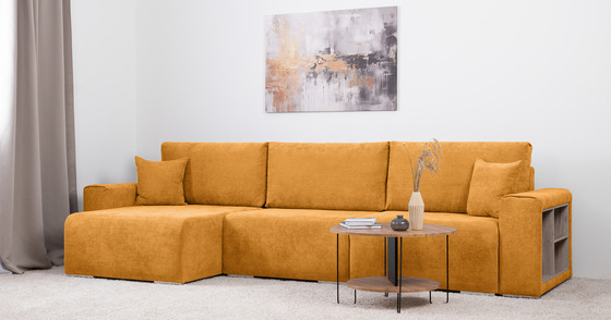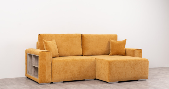 Диван-кровать угловой Оксфорд 714 композиция 1, шенилл STORM 8 горчичный, модульная система, сборка на любую сторону