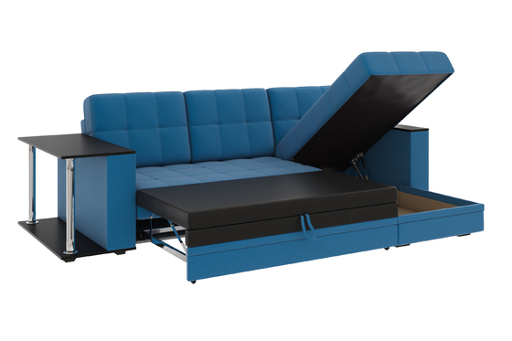 Диван-кровать угловой Тэдди 1504 композиция 3, букле Pique 009 синий, модульная система, сборка на любую сторону
