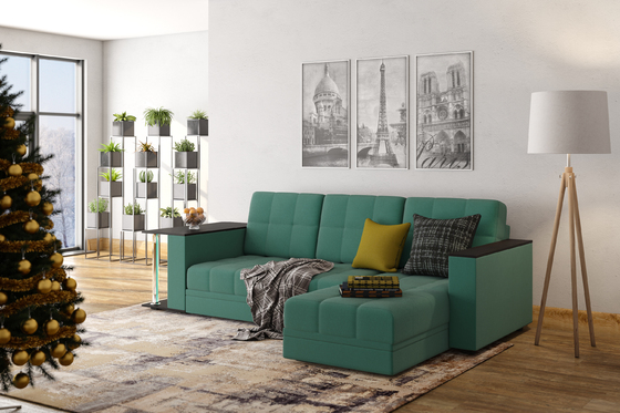 Диван-кровать угловой Оксфорд 715 композиция 2, STORM 9 мятный, модульная система, сборка на любую сторону