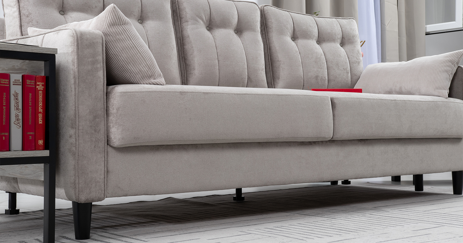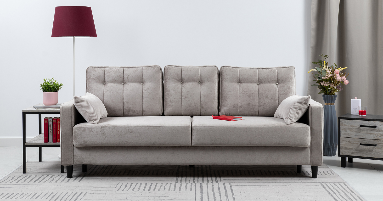 Диван-кровать прямой Арно ТД 565 велюр Лаки 04 песочный, Vertical 910 молочно-серый