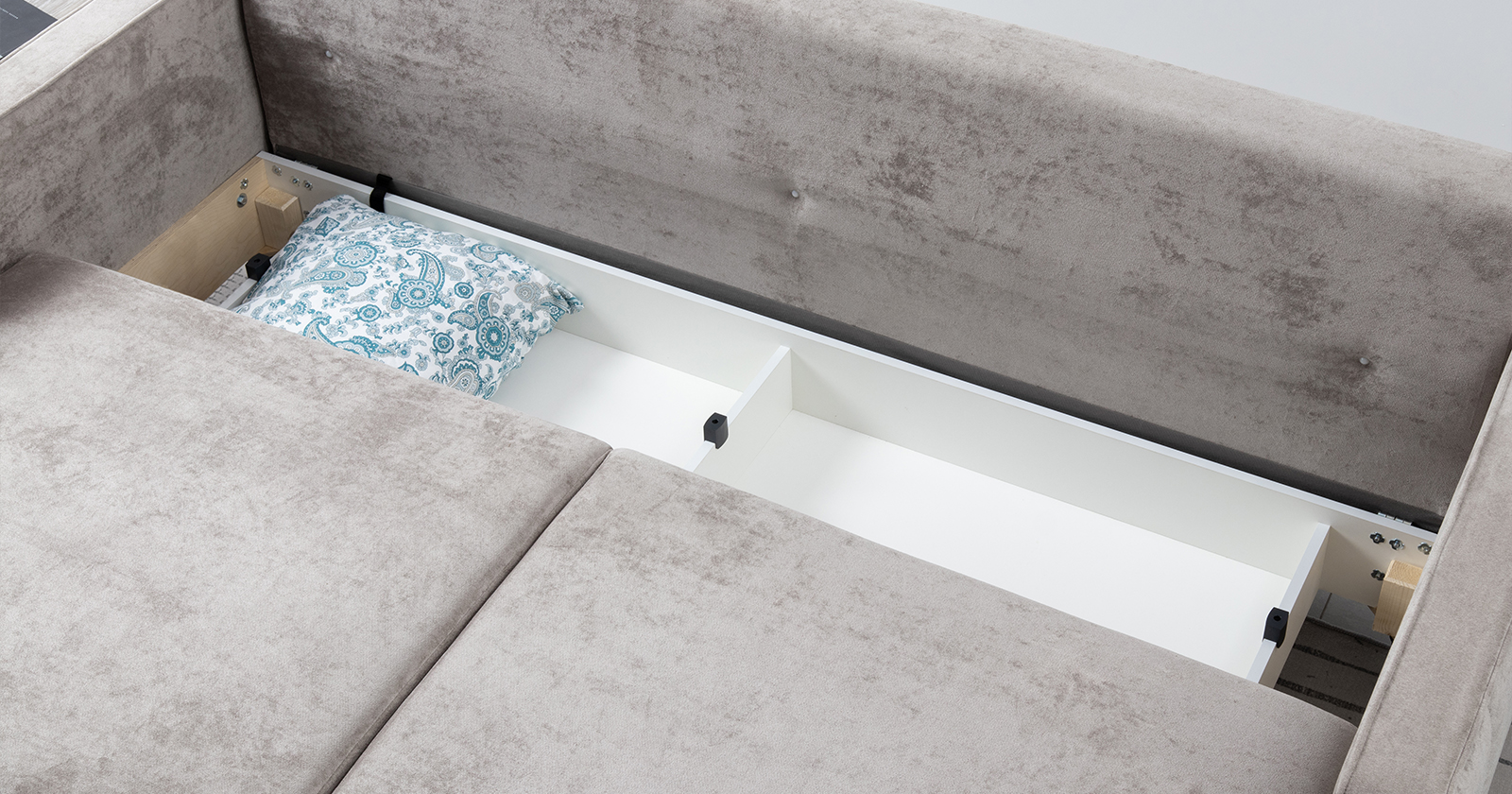 Объемные подушки дивана обеспечивают эргономичную посадку, а ровное спальное место - полноценный ночной отдых.