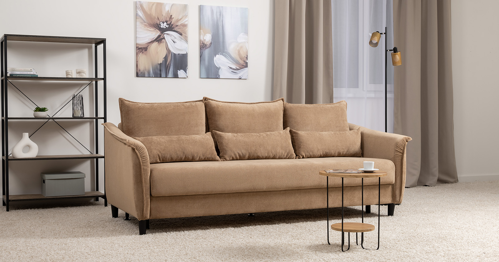 Изогнутые подлокотники в форме лепестков придают коллекции изысканный и элегантный вид, а дополнительные декоративные подушки обеспечат поддержку тела и помогут уютно устроиться на диване. В наполнении дивана используется высокоэластичная пена, которая адаптируется к форме вашего тела и гаранитует максимальный комфорт во время отдыха.