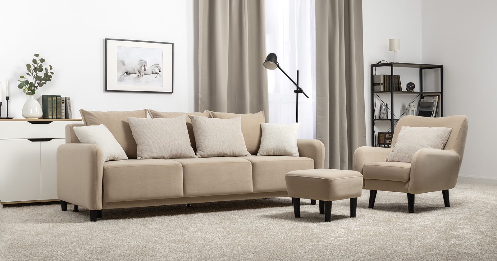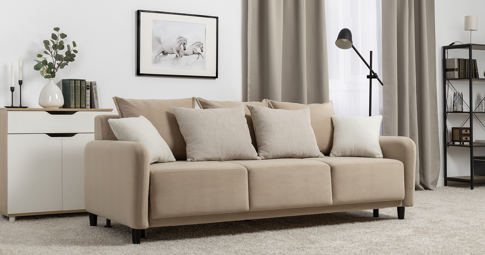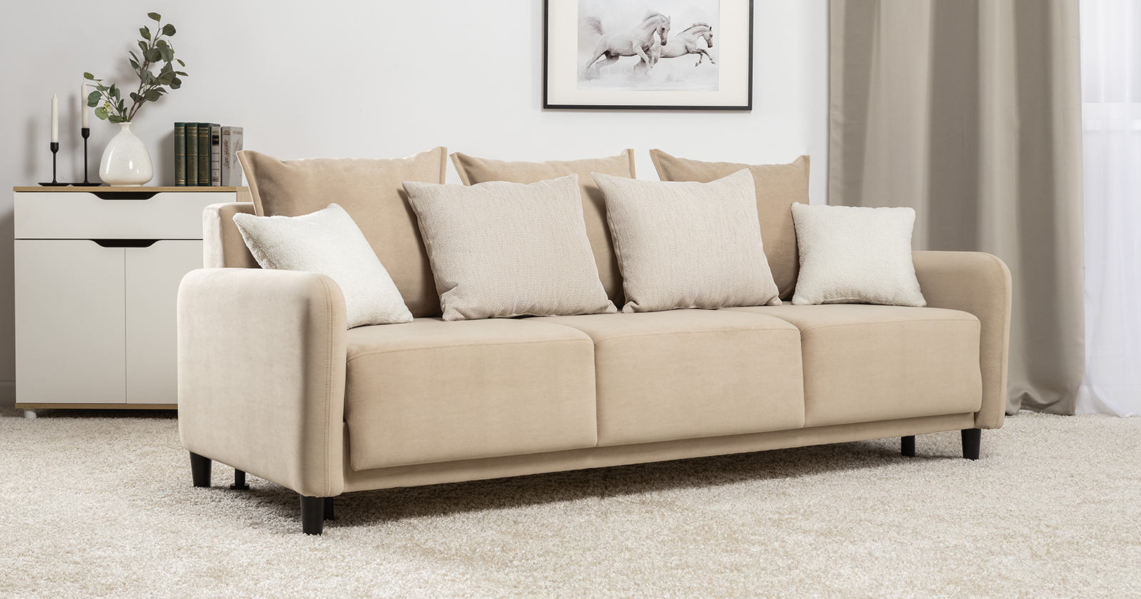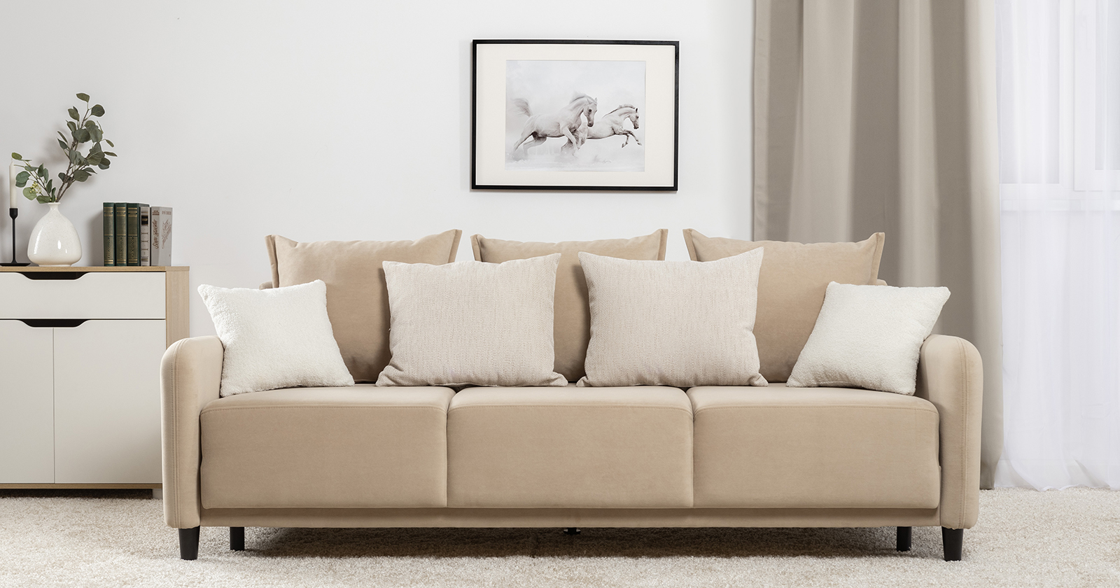 Диван-кровать прямой Дакота ТД 582 велюр Vendetta 02 кремовый, Riga 1598 z1 col 6 бежевый, Romeo 02