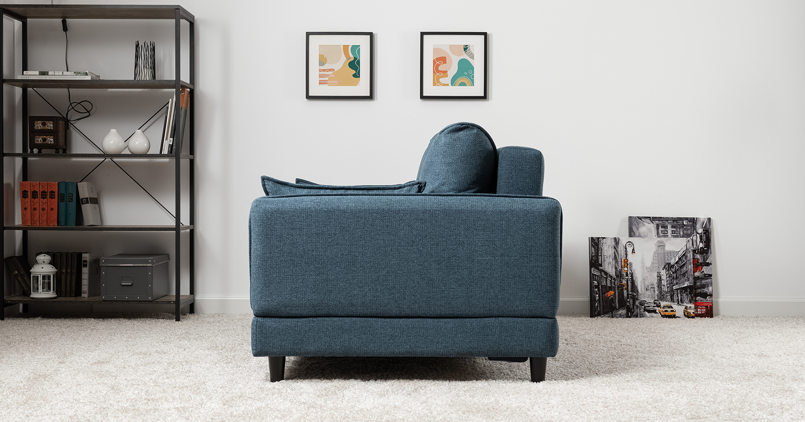 Лаконичный дизайн с деревянными ножками и узкими подлокотниками удачно дополнит не только интерьер гостиной, но и кабинета, и кухни. Кроме того, диван Макс позволяет организовать спальное место в ограниченном пространстве.