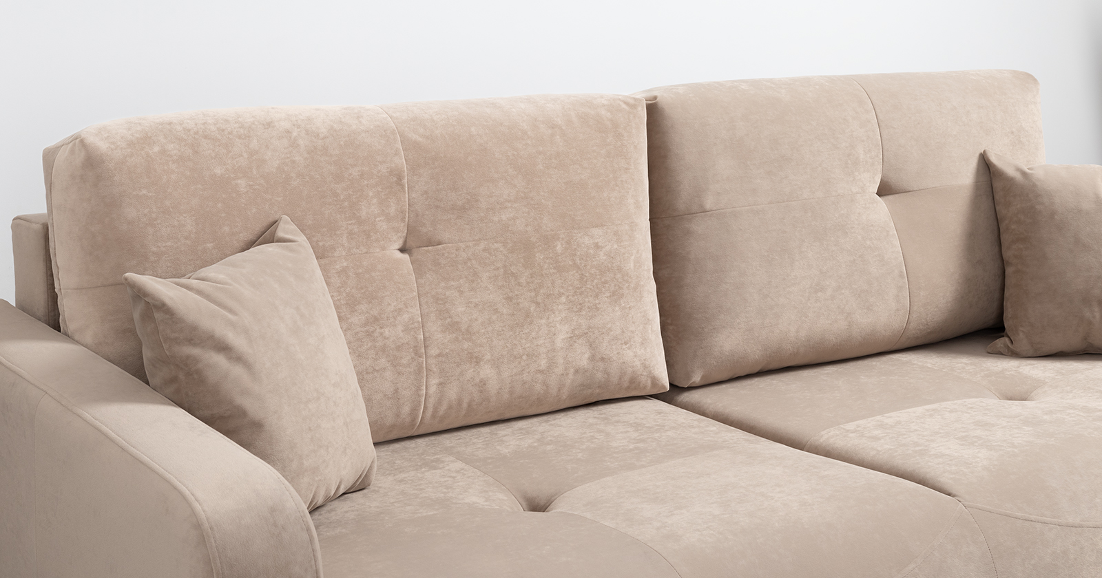 Ткань Aura: фактурный матовый велюр, это поколение велюров без «пальчикового» эффекта. Бархатистые цвета коллекции отлично подчеркнут скандинавские, минималистичные дизайны, а также будут органично смотреться в ярких и современных интерьерах.