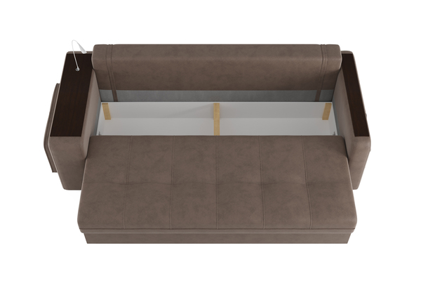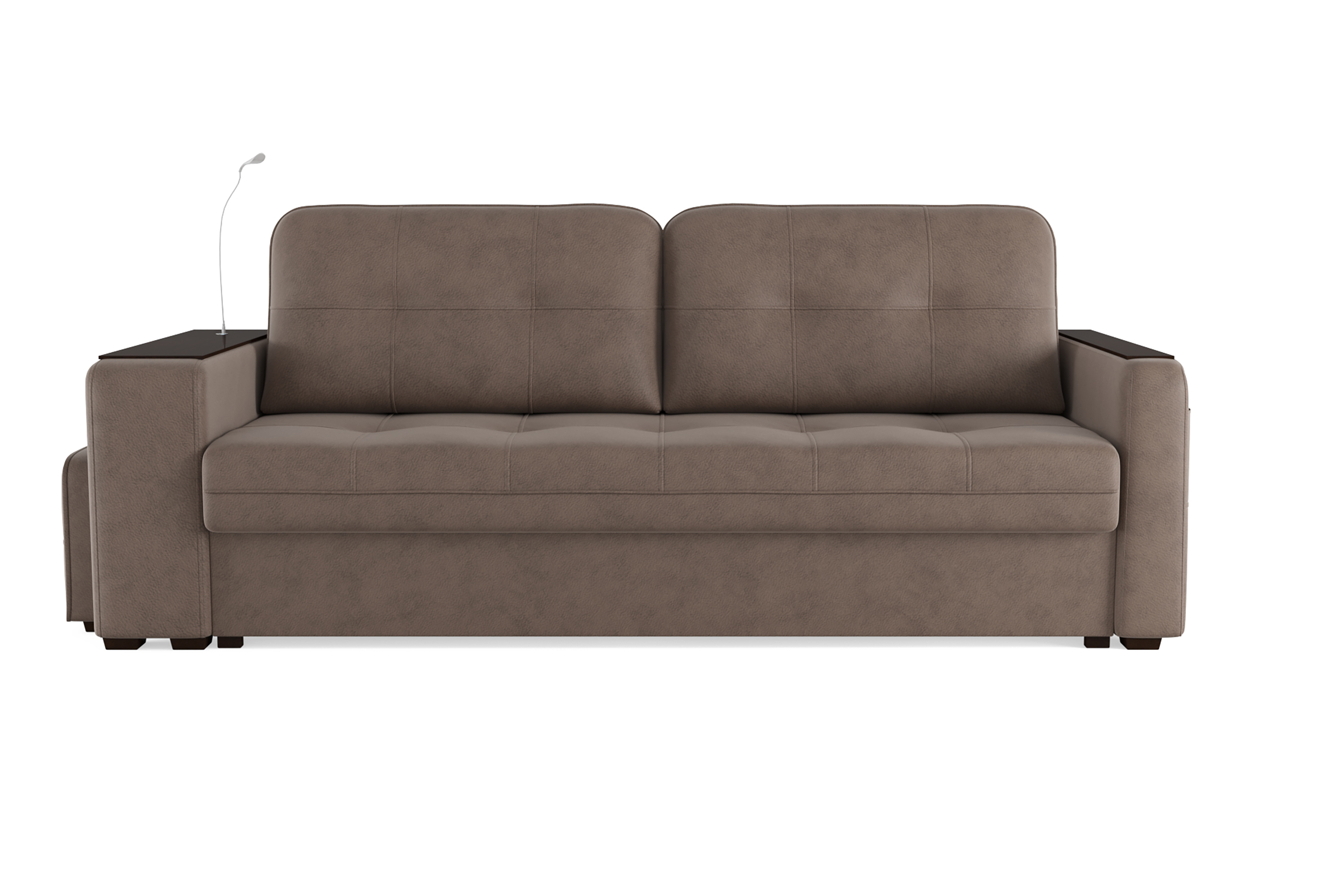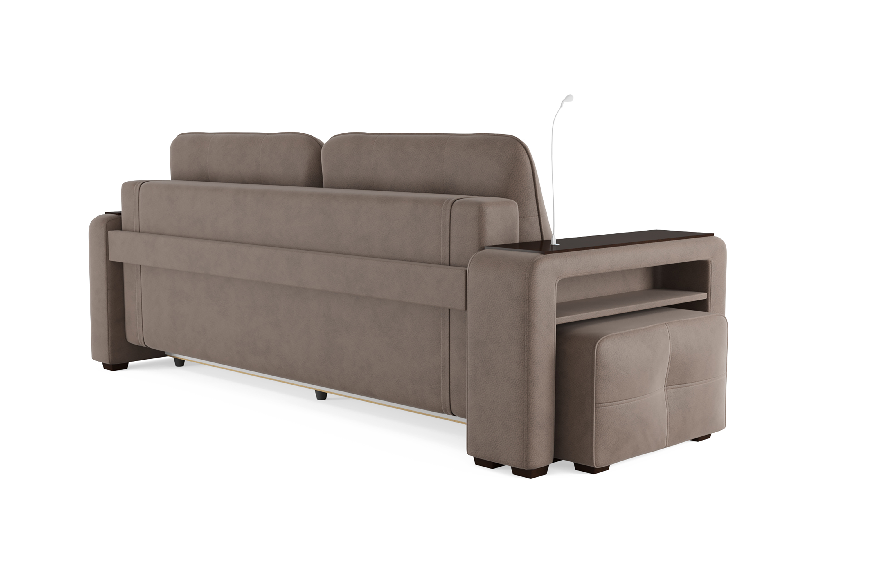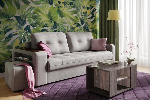 Диван «SMART 4» — это не просто мягкая мебель, а один из ключевых элементов интерьера с обширным функционалом, где эстетика тесно соседствует с комфортом и эргономичностью.  Одна боковина оснащена карманом для хранения мелочей и гаджетов, другая боковина совмещает одновременно: рабочую поверхность, за счет широкой накладки, двойной  usb - порт  и портативную лампу точечного света, которая входит в комплект. Добавить контрастных деталей в интерьер поможет пуф, интегрированный в подлокотник. Этот вариант для современных людей, которые ценят комфорт и удобство отдыха. Мягкое сиденье с легкостью трансформируется в просторное спальное место, на котором смогут утроиться ваши гости. Стильный и уютный, он станет отличным решением, если вы ищите не только красоту, но и комфорт.