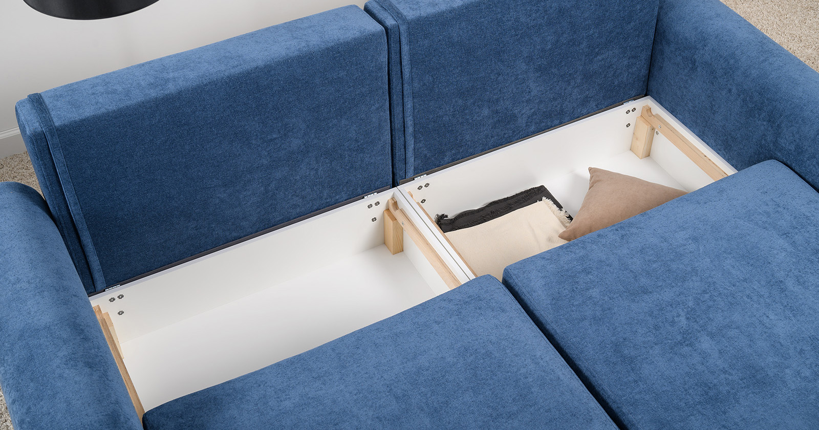 Диван-кровать угловой Тэдди 1504 композиция 3, букле Pique 009 синий, модульная система, сборка на любую сторону