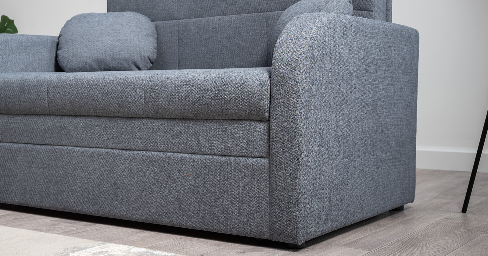 Коллекция выполнена в современном минималистичном стиле с мягкой обивкой из износостойкой ткани и декоративной стежкой, подчеркивающей геометрию форм. Механизм трансформации обеспечивает дополнительное спальное место, делая мебель не только эстетичной, но и максимально функциональной для небольших пространств.