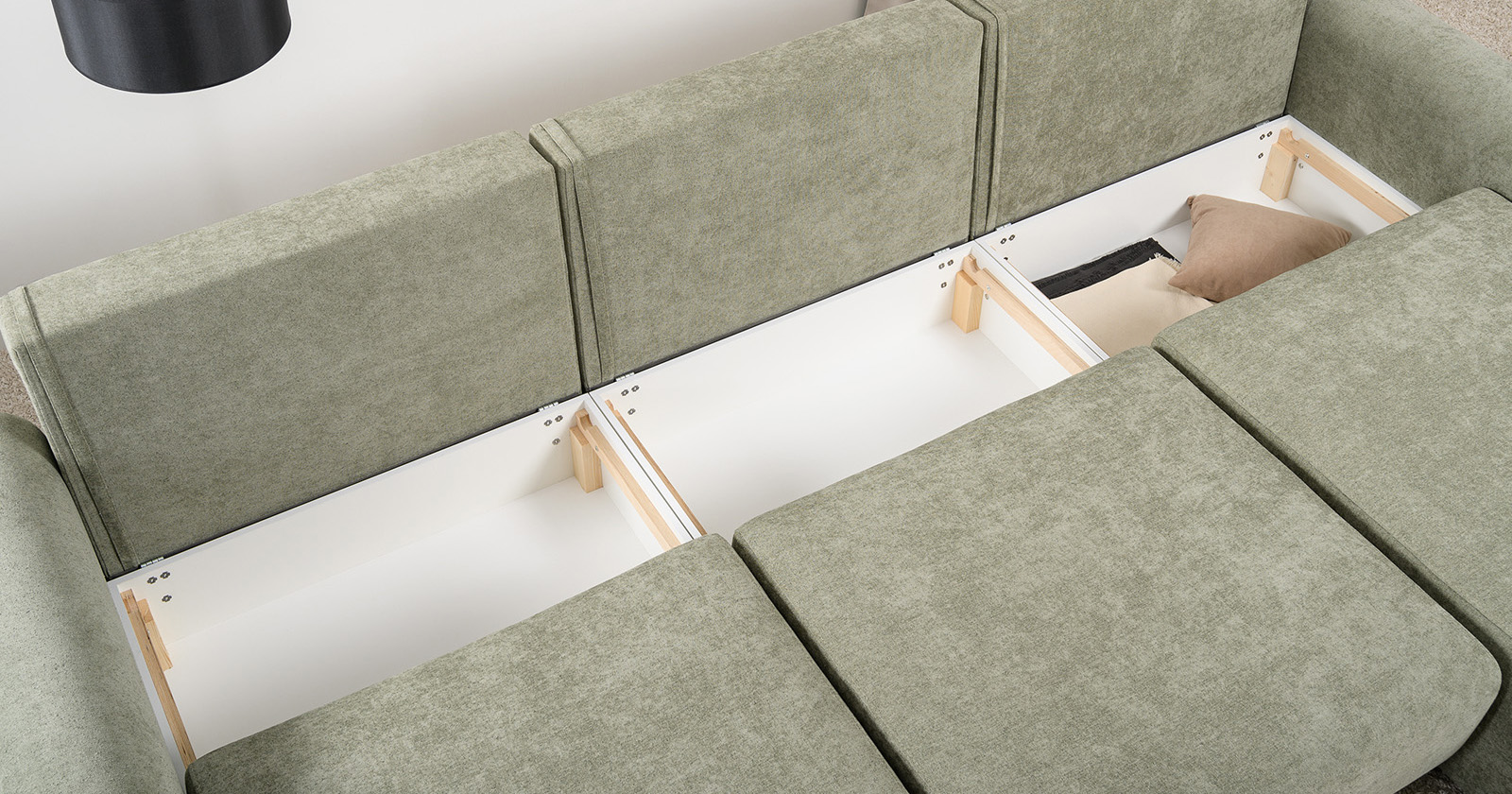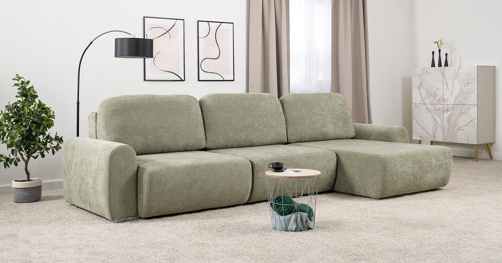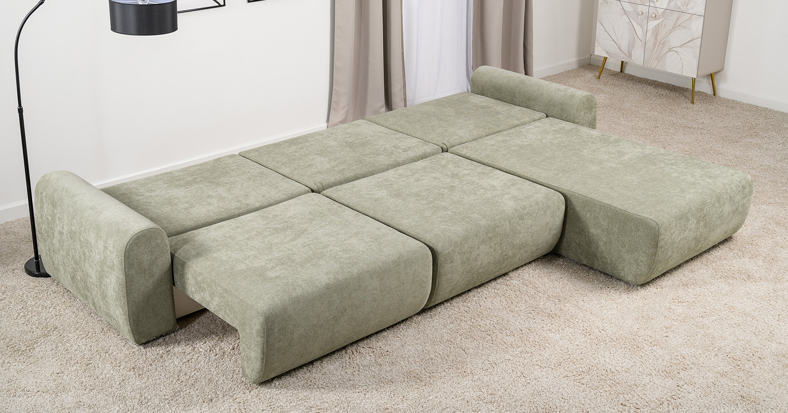 Диван-кровать угловой Тэдди 1503 композиция 3, букле Pique 007 оливковый, модульная система, сборка на любую сторону