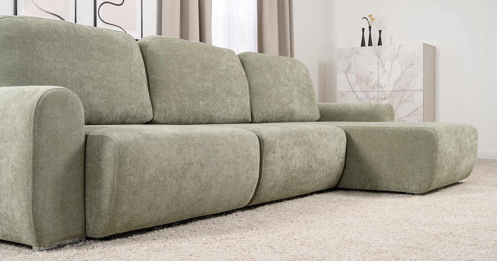 Диван-кровать угловой Тэдди 1503 композиция 2, букле Pique 007 оливковый, модульная система, сборка на любую сторону