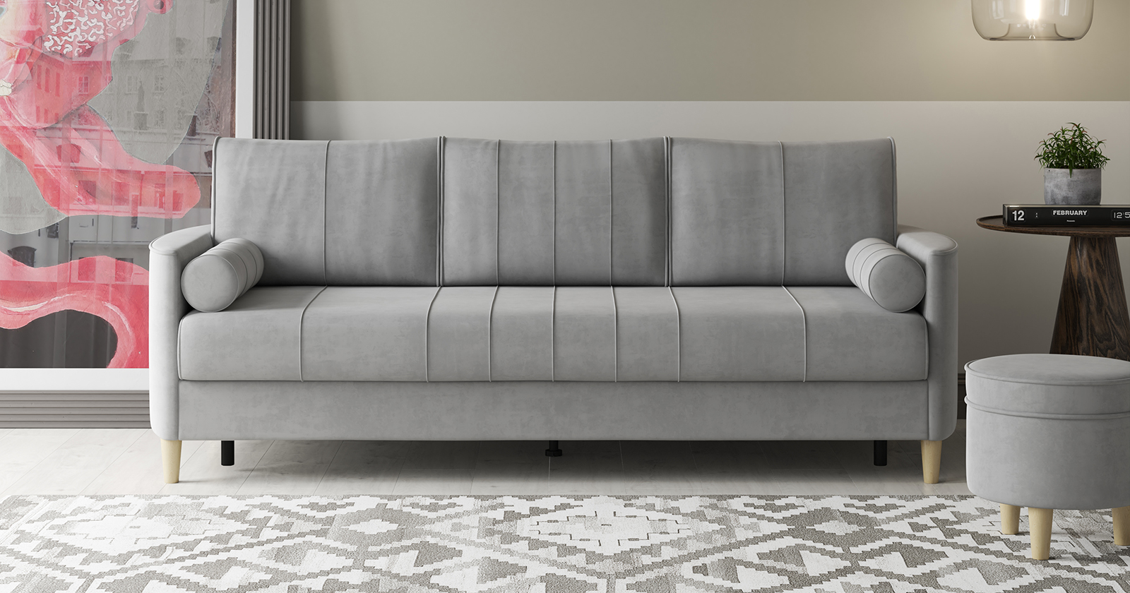 Диван прямой Лора ТД 328 велюр серебристый серый
