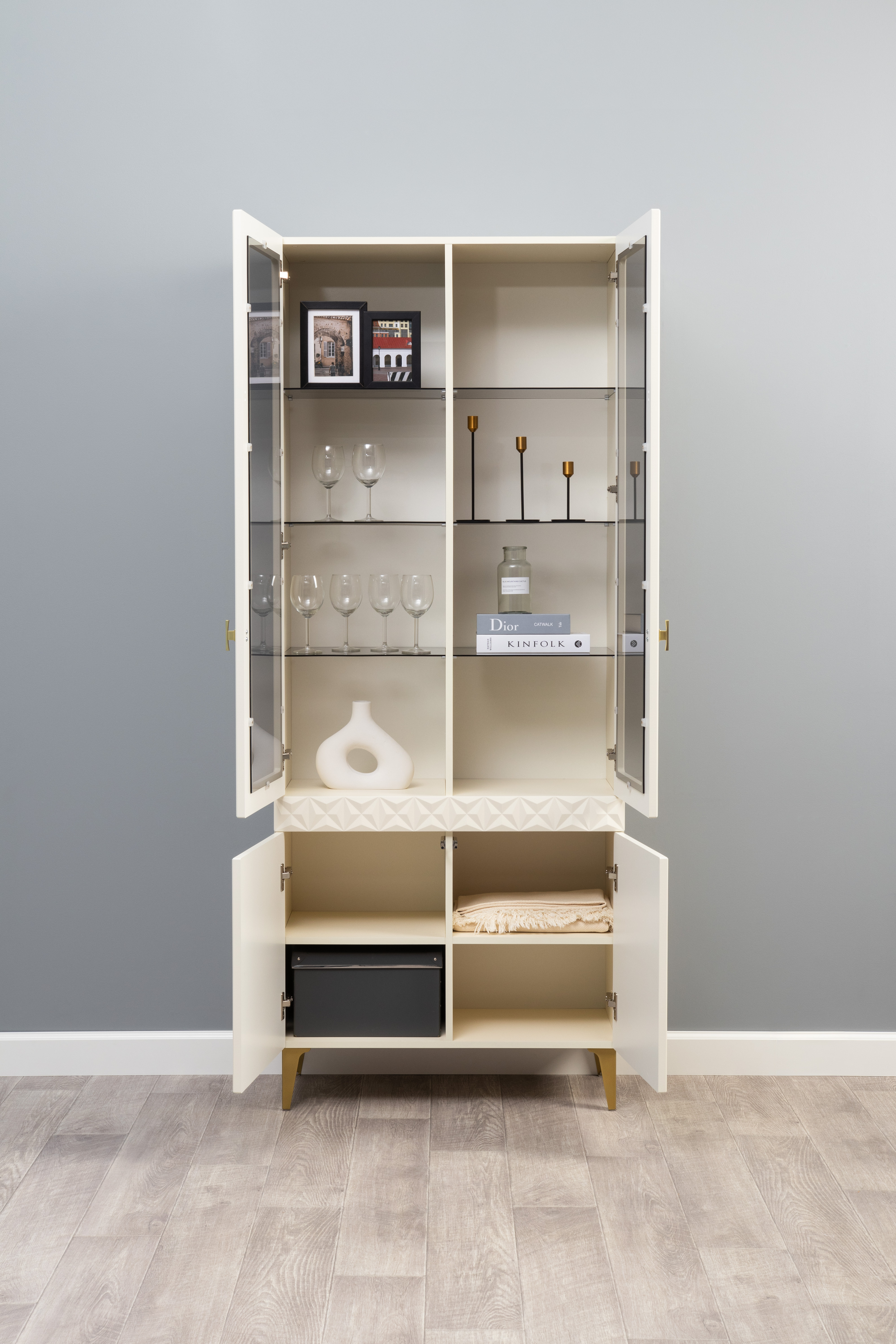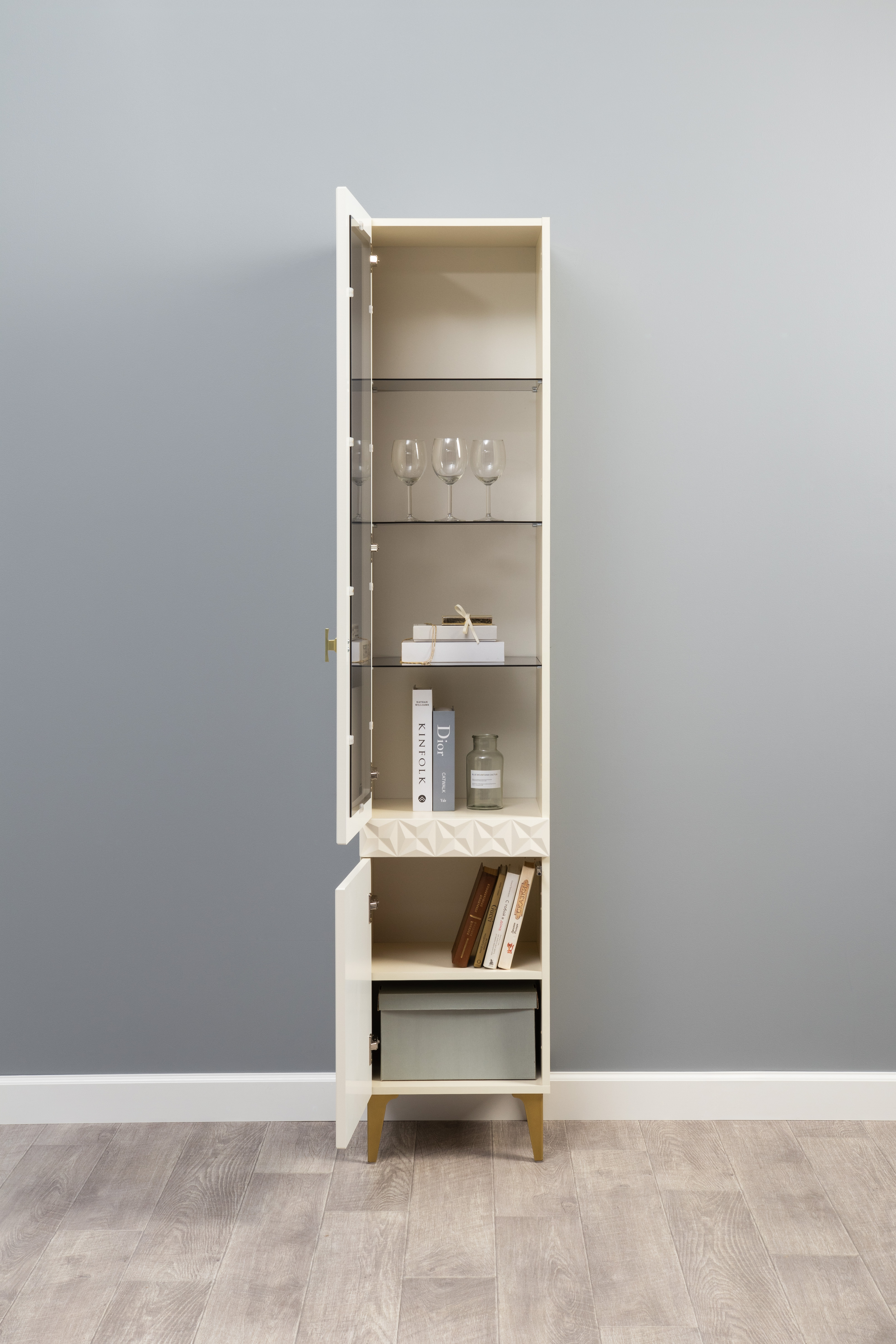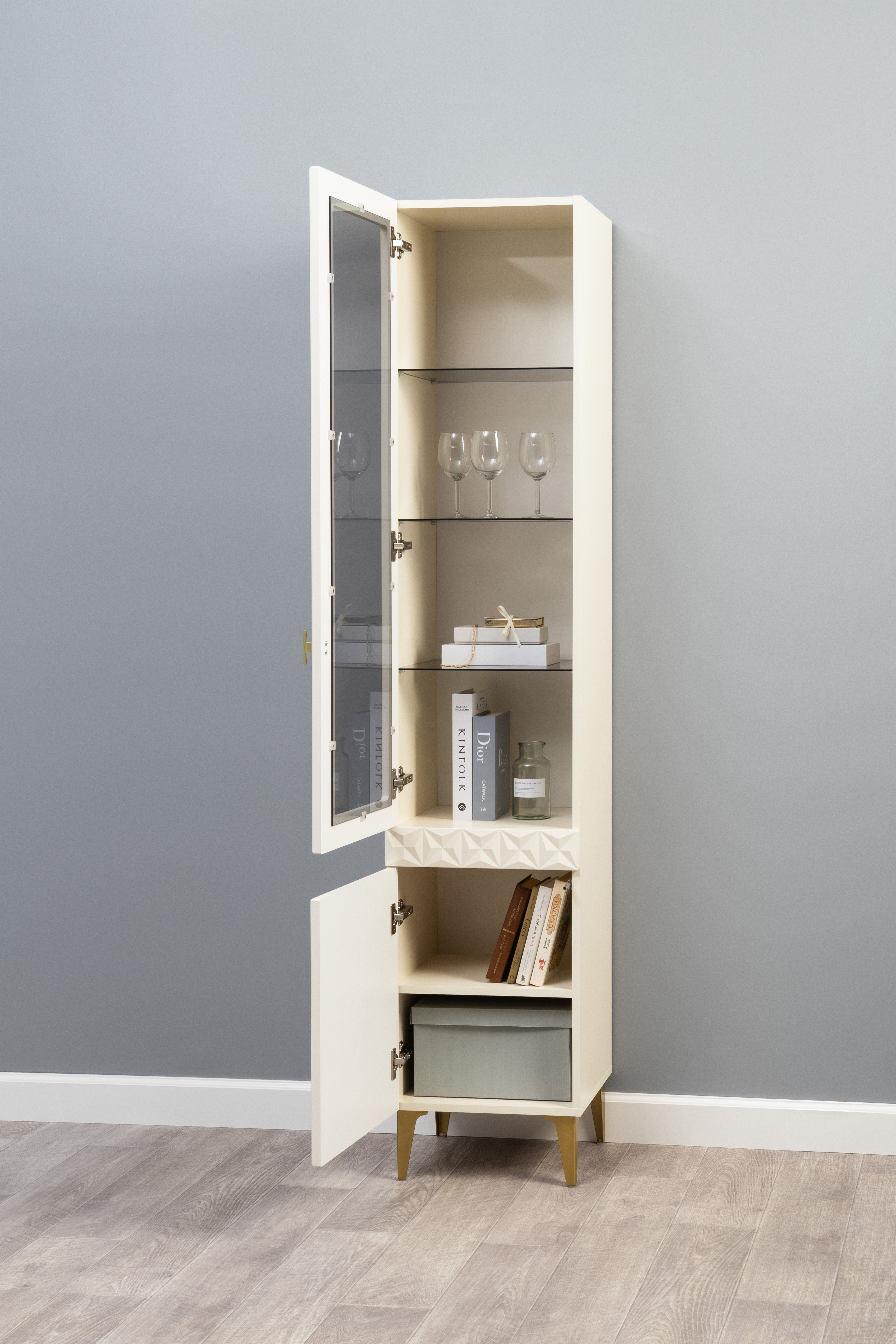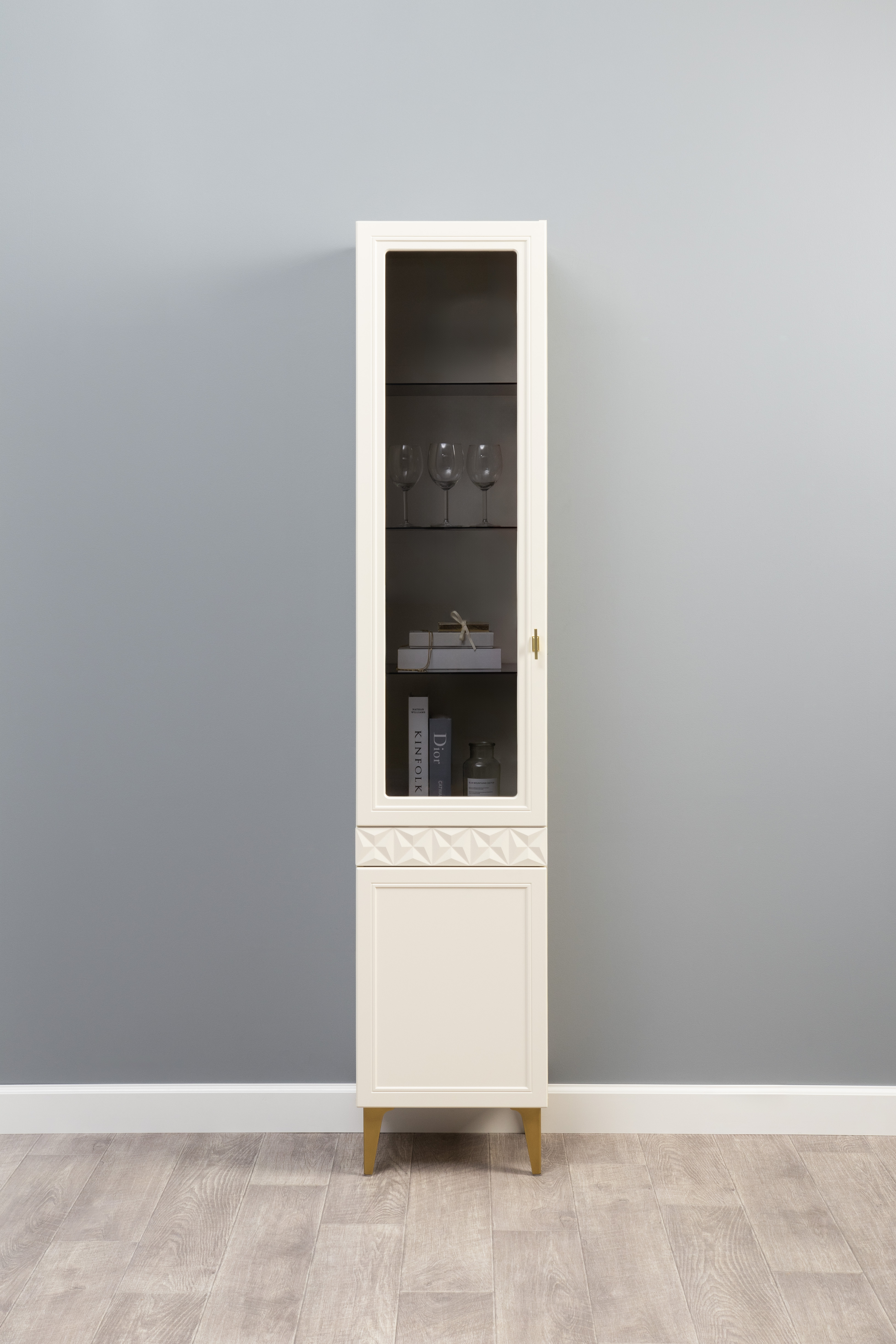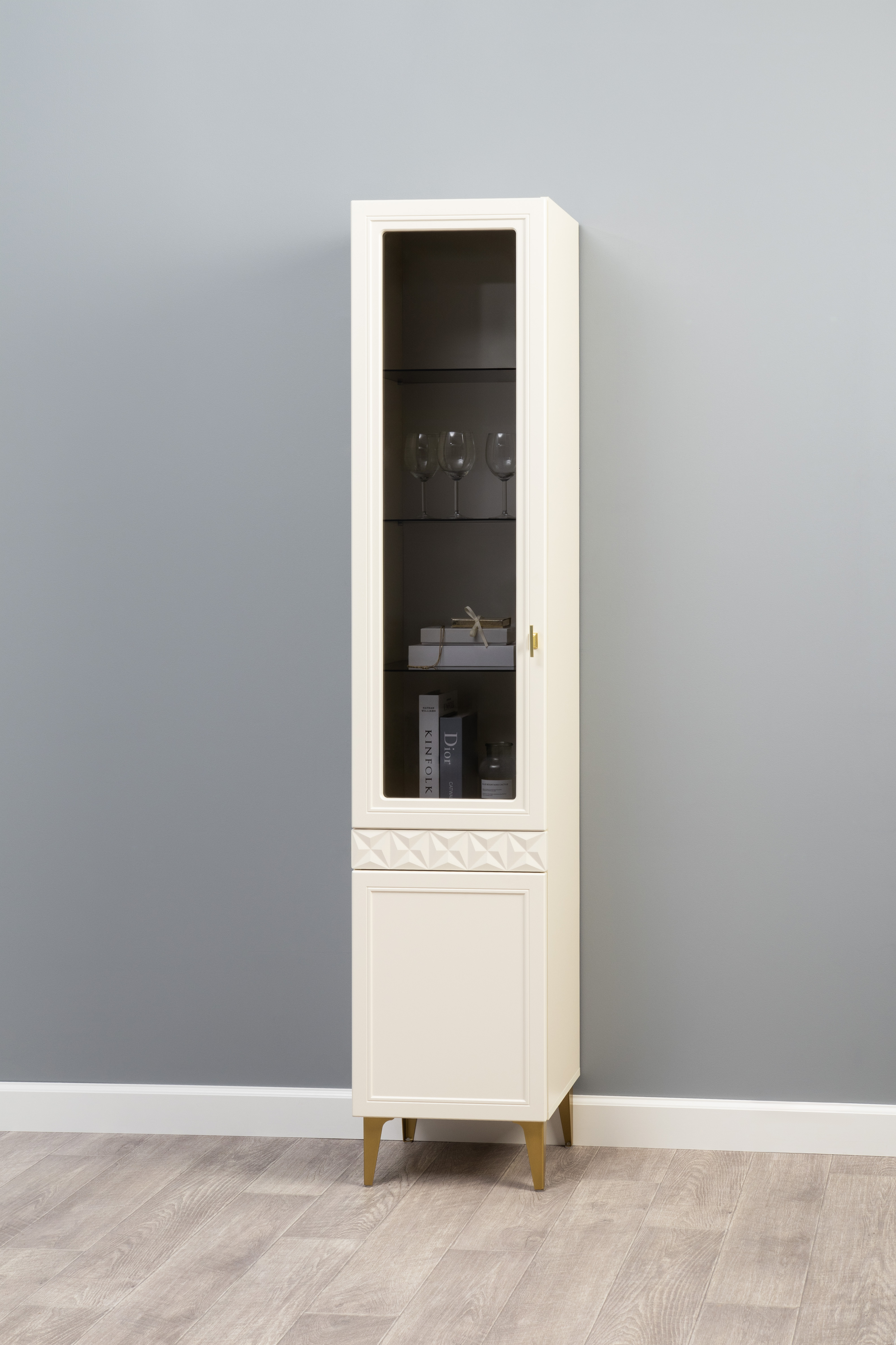 Шкаф-витрина Марион 16.397.02 слоновая кость С341 PE, слоновая кость 6898 ПВХ