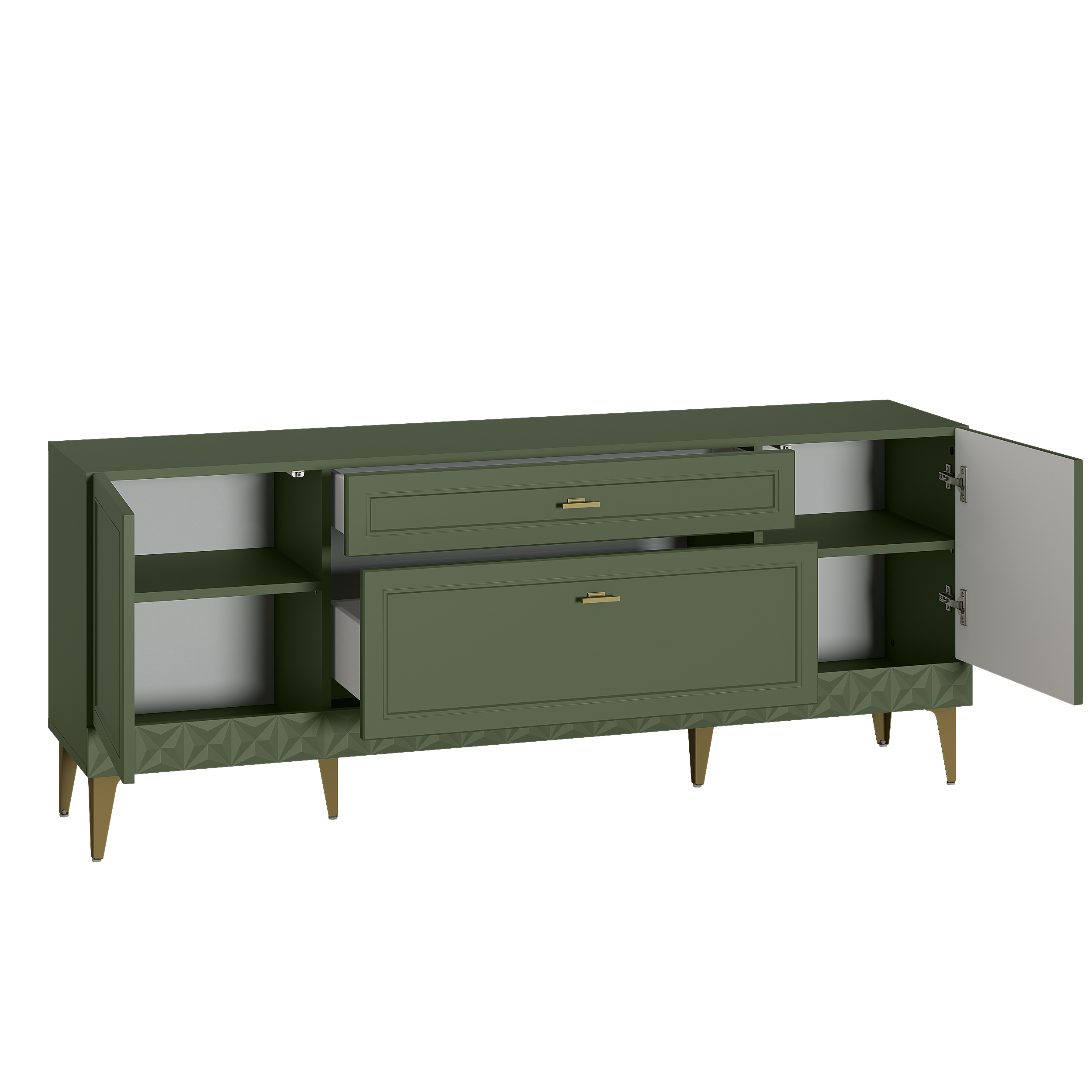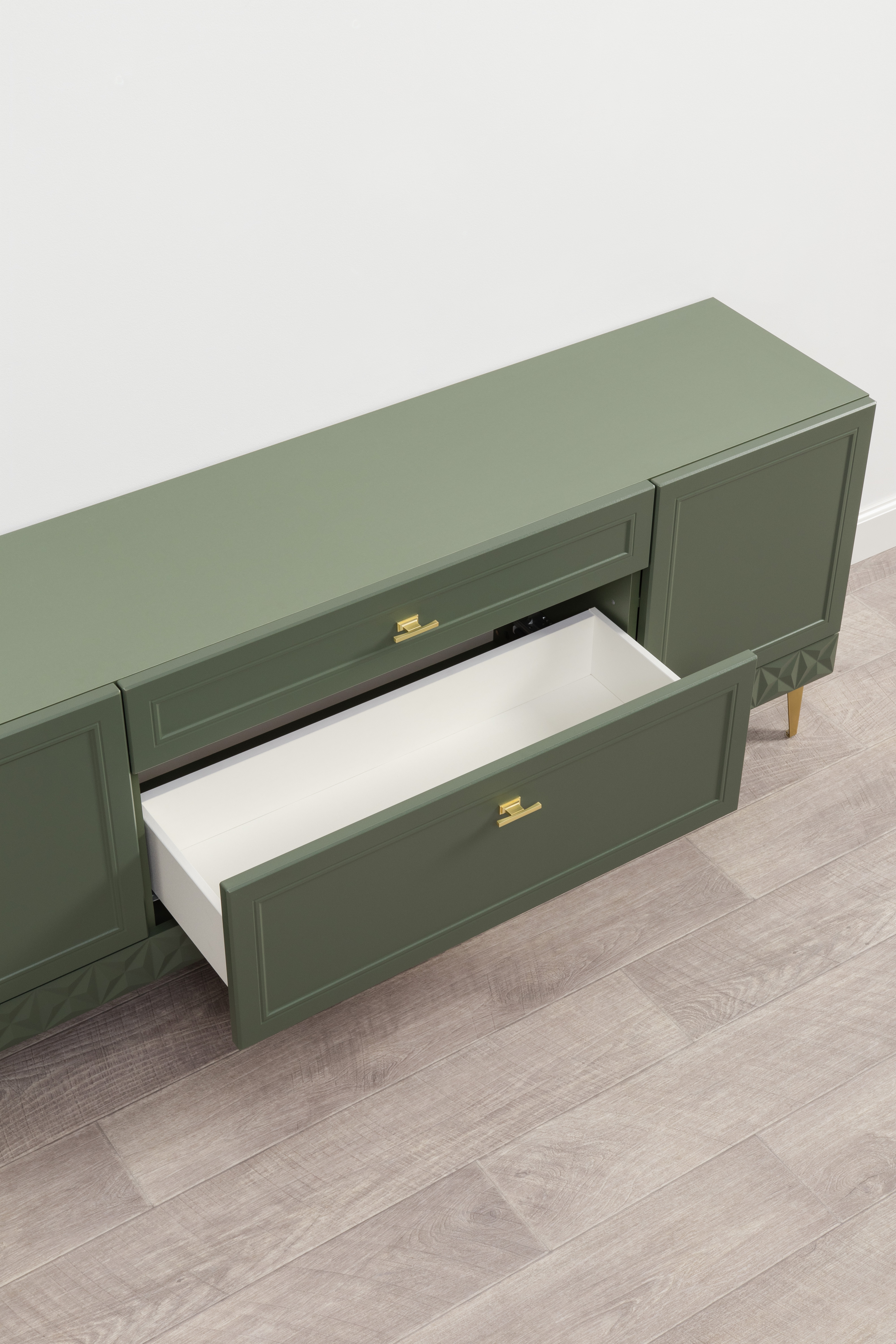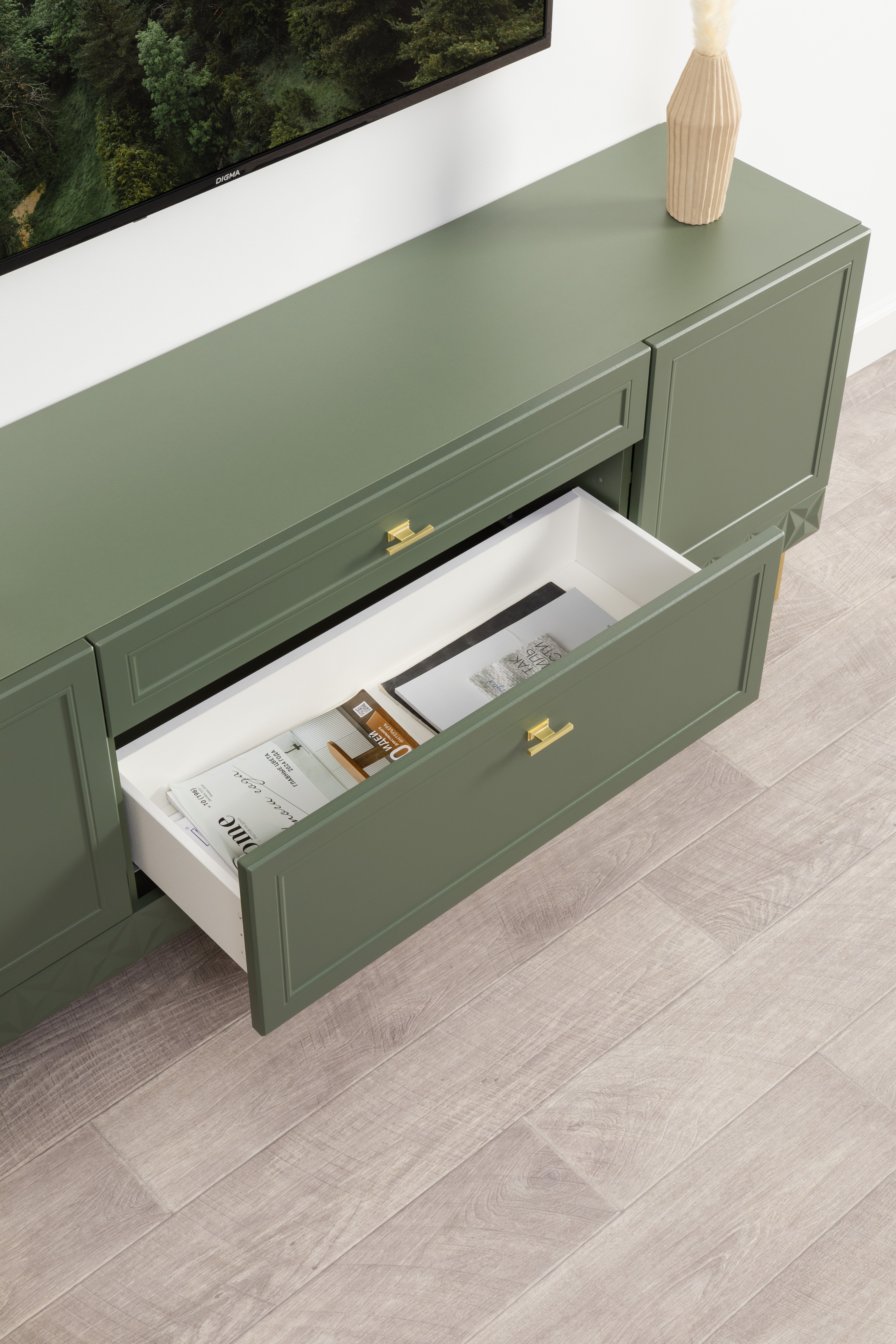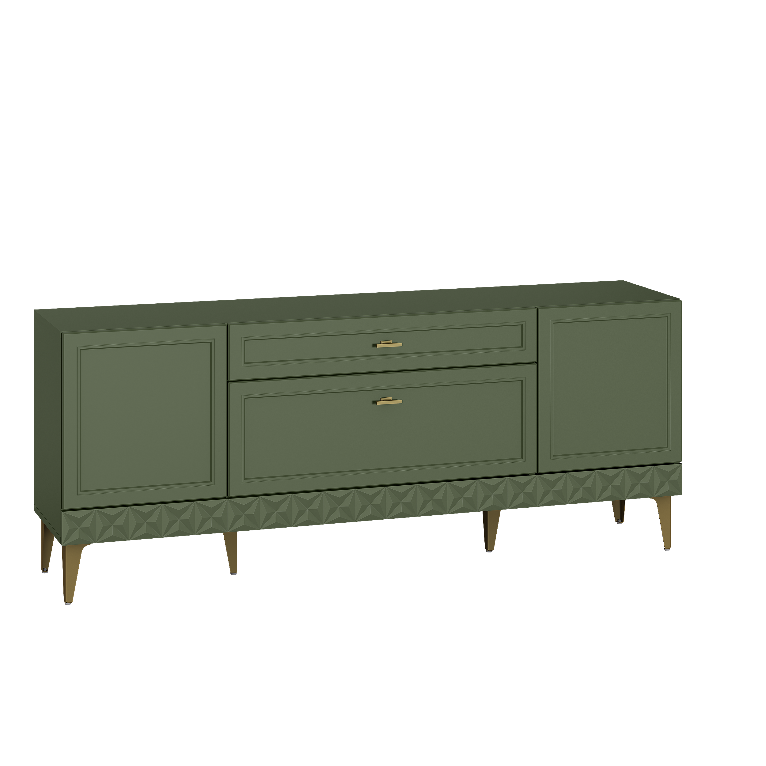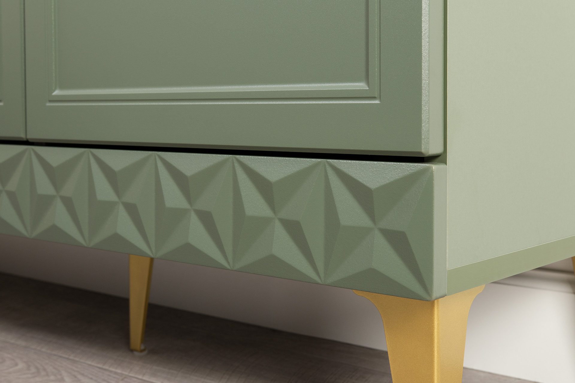Комод Марион 16.249 дымчатый зеленый K521, олива шагрень AG 1050 ПВХ, белый PE шагрень