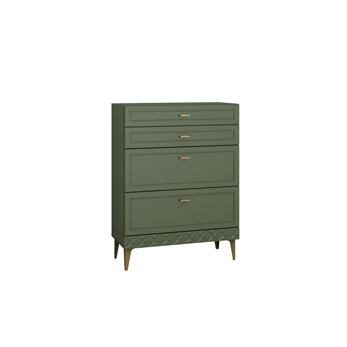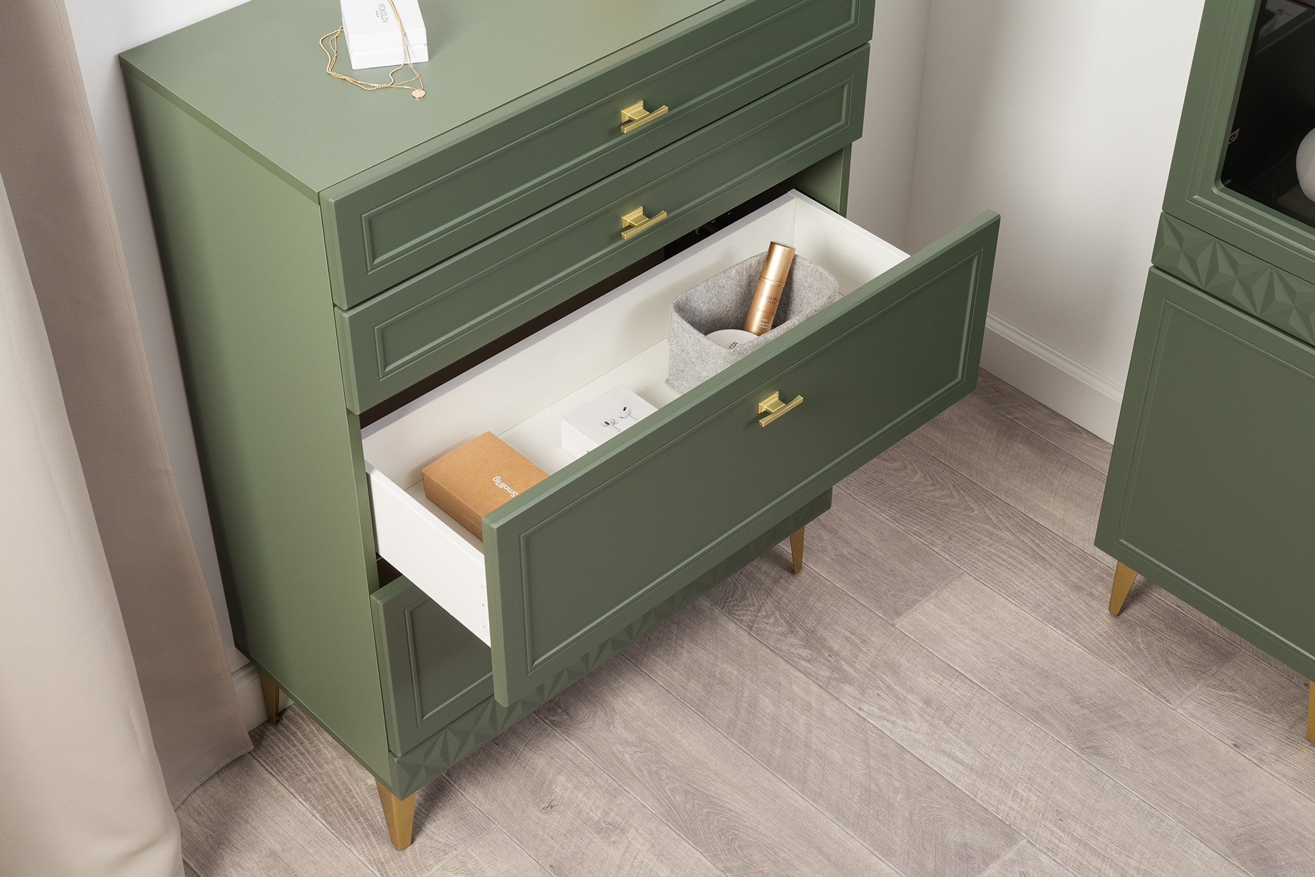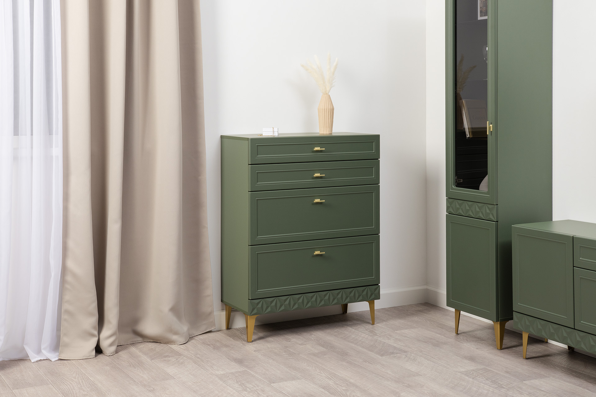 Комод Марион 16.249 дымчатый зеленый K521, олива шагрень AG 1050 ПВХ, белый PE шагрень