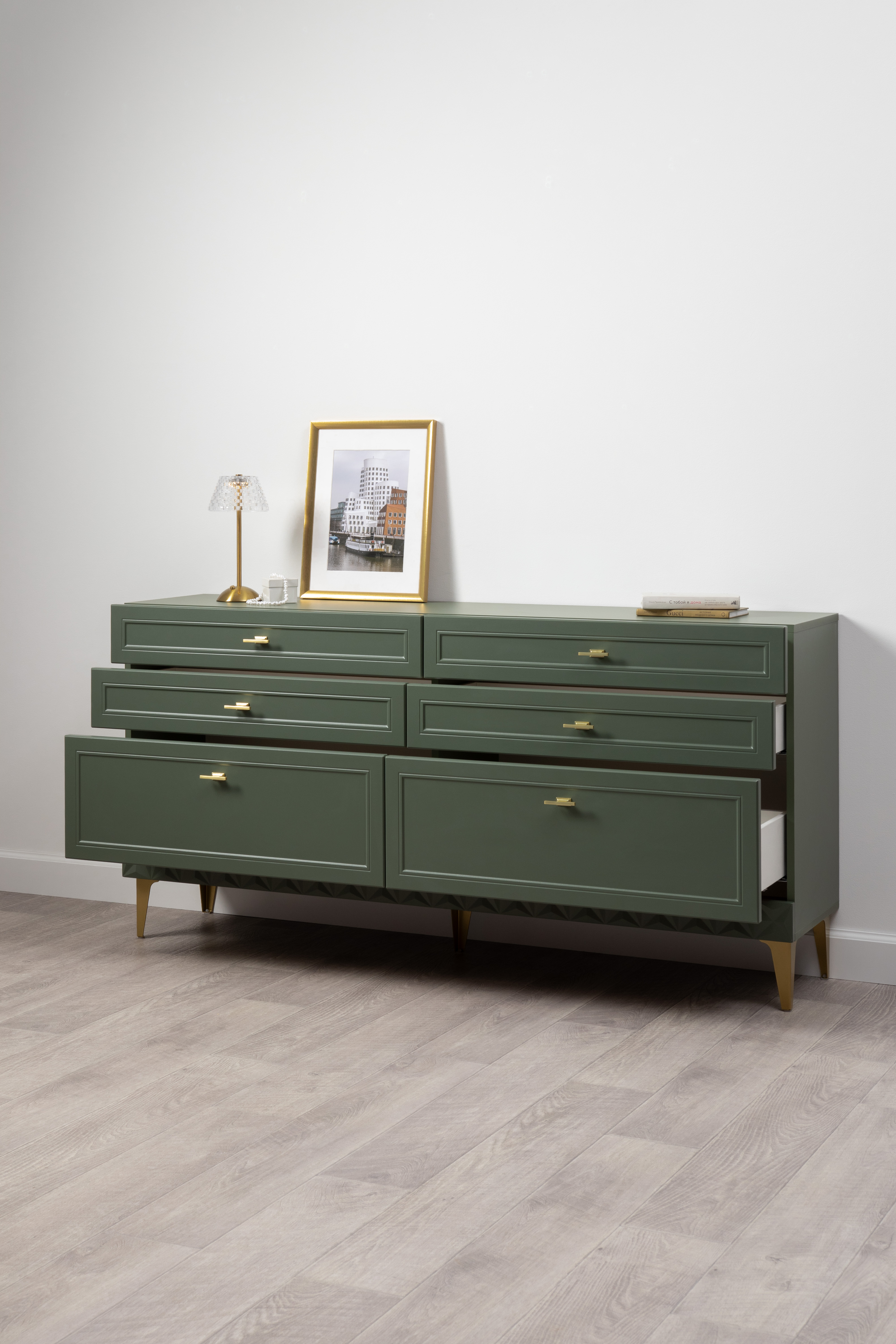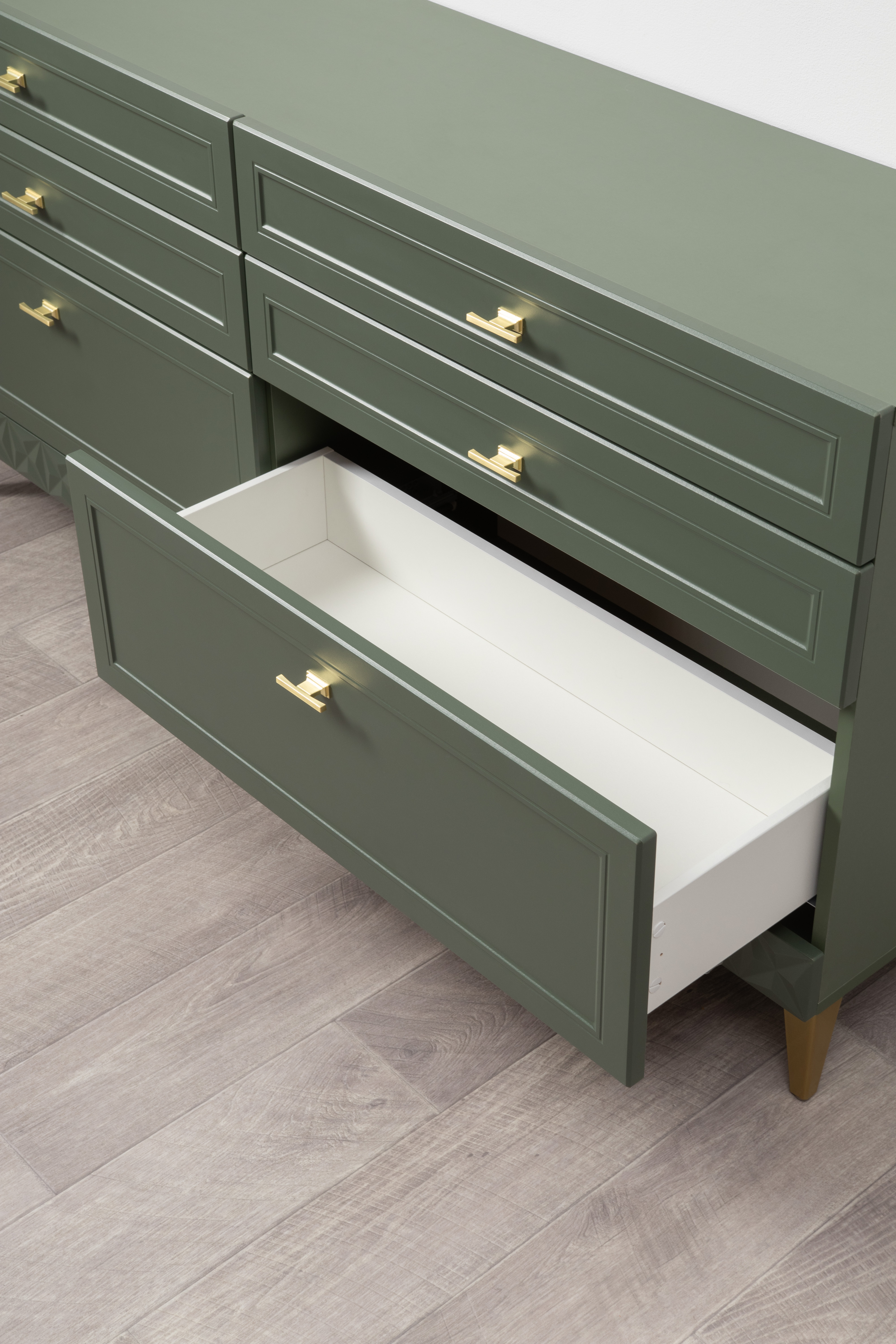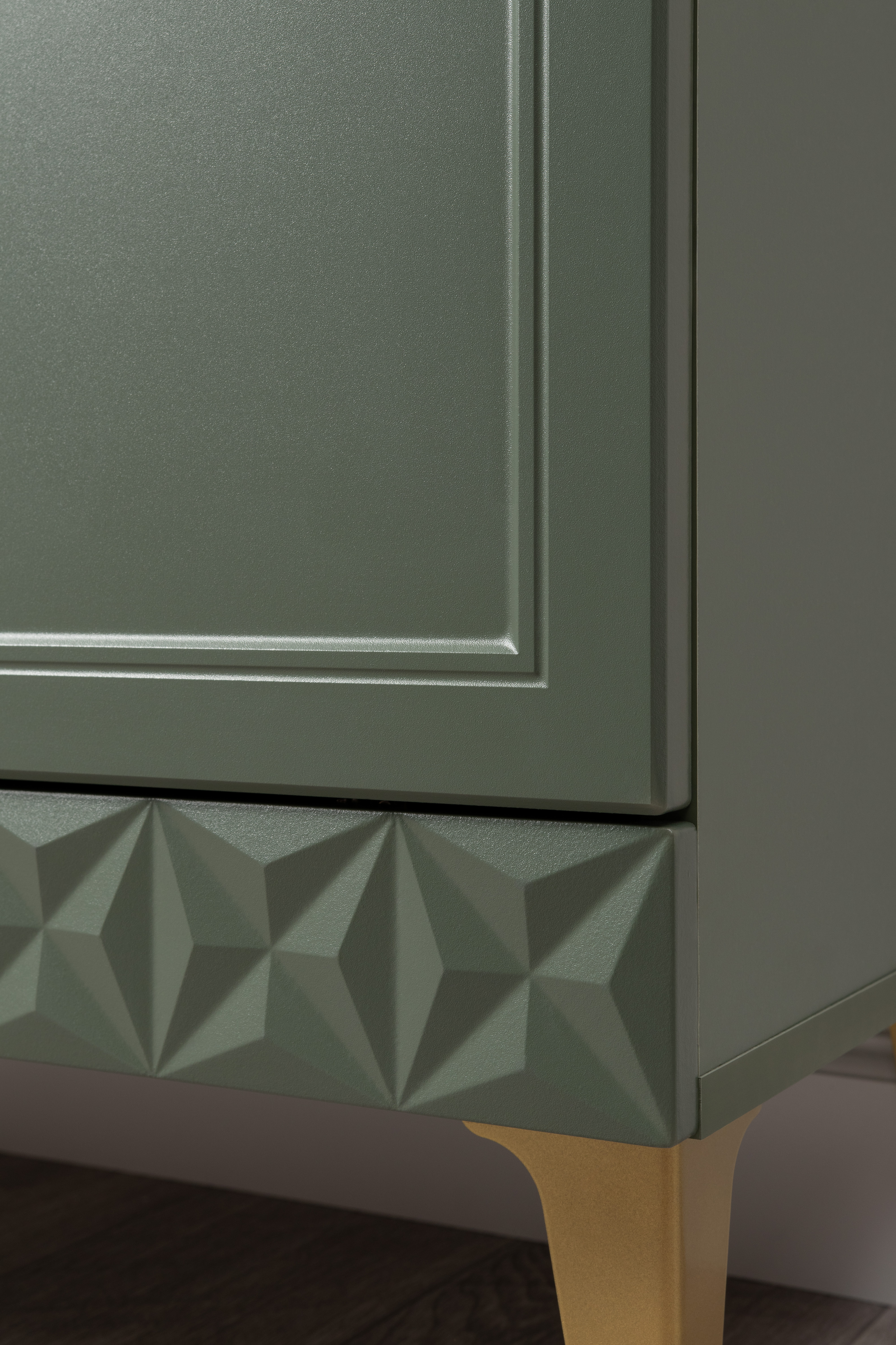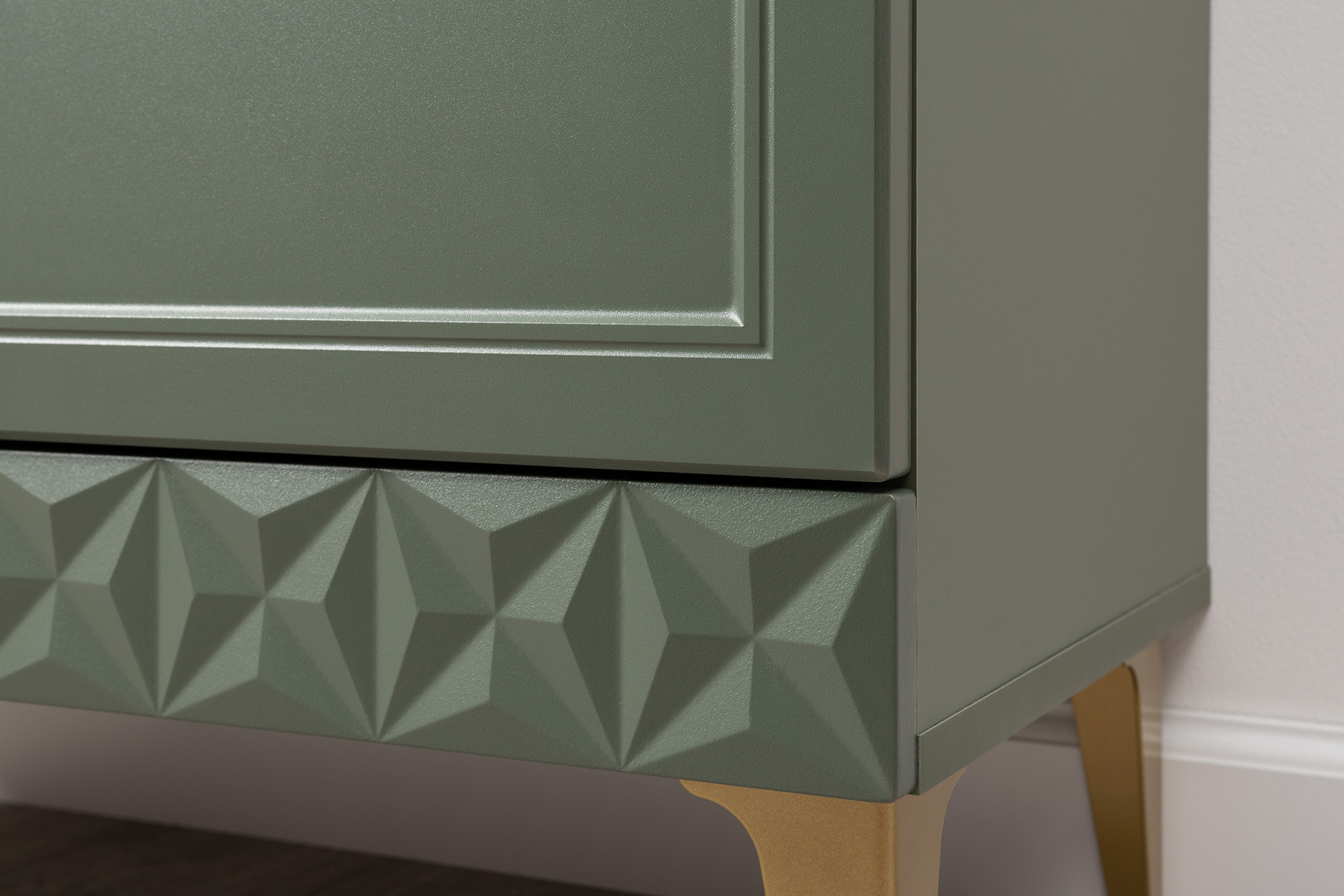 Комод Марион 16.256 дымчатый зеленый K521, олива шагрень AG 1050 ПВХ, белый PE шагрень