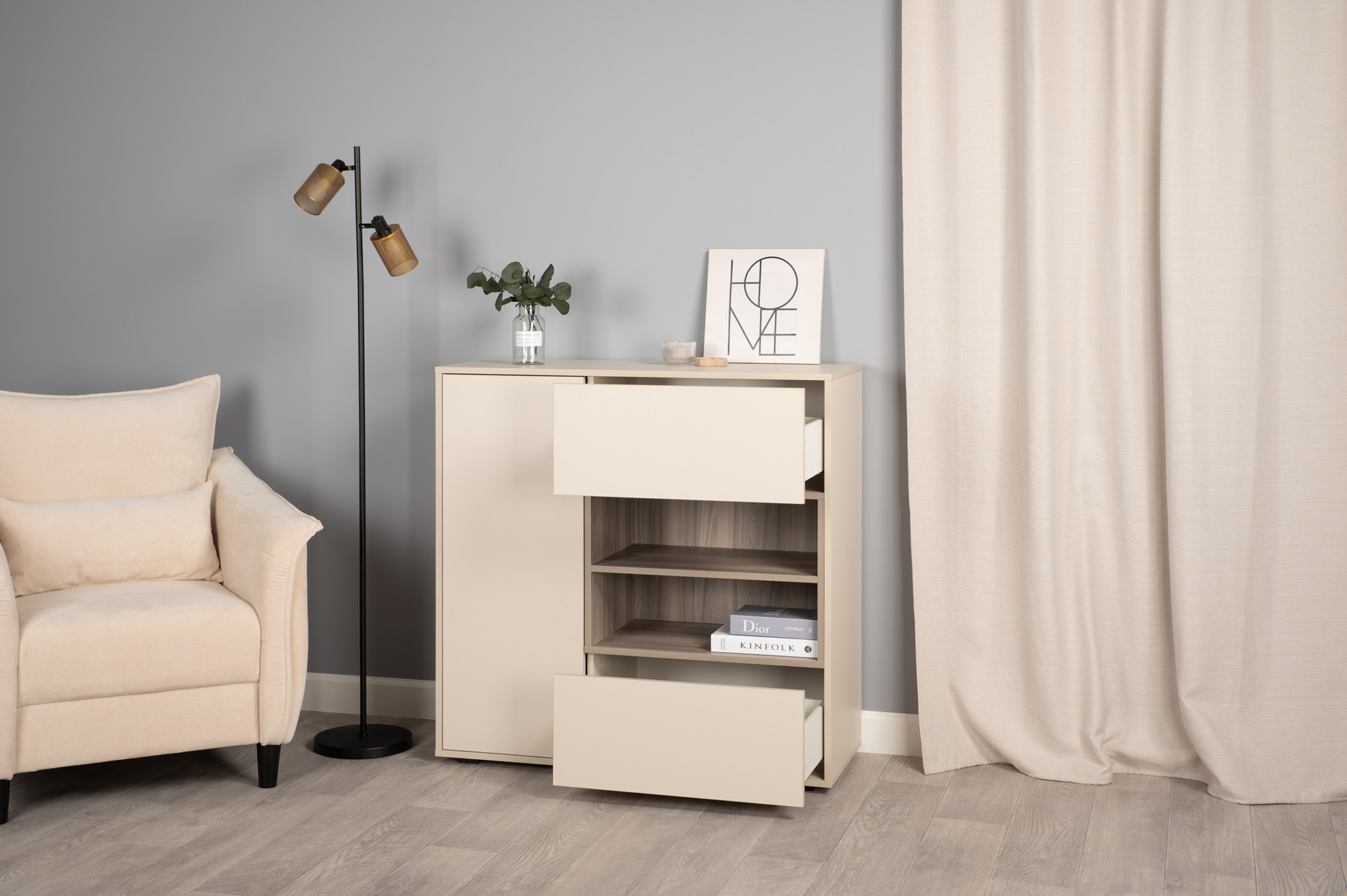Комод Тайл 16.237 сатин 7045 SU, эмили блаш U9135, белый PE шагрень, собирается на любую сторону