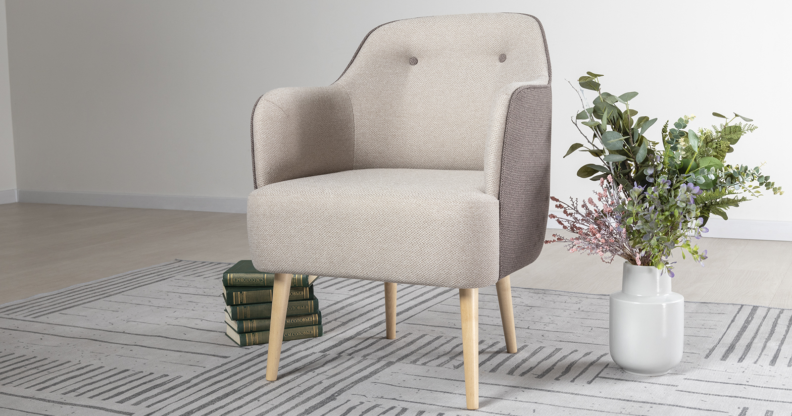 Алекса – это компактное лёгкое кресло в актуальном скандинавском стиле. Рекомендуется столовую к обеденному столу или в гостиную. Алекса обеспечивает удобную, высокую посадку при минимальных габаритах. Декоративный кант по внешним контурам подлокотников и спинки подчёркивает форму кресла. На спинке сиденья две утяжки с пуговицами. Кресло выдерживает нагрузку 150 кг. Имеет деревянные опоры высотой 250 мм.
