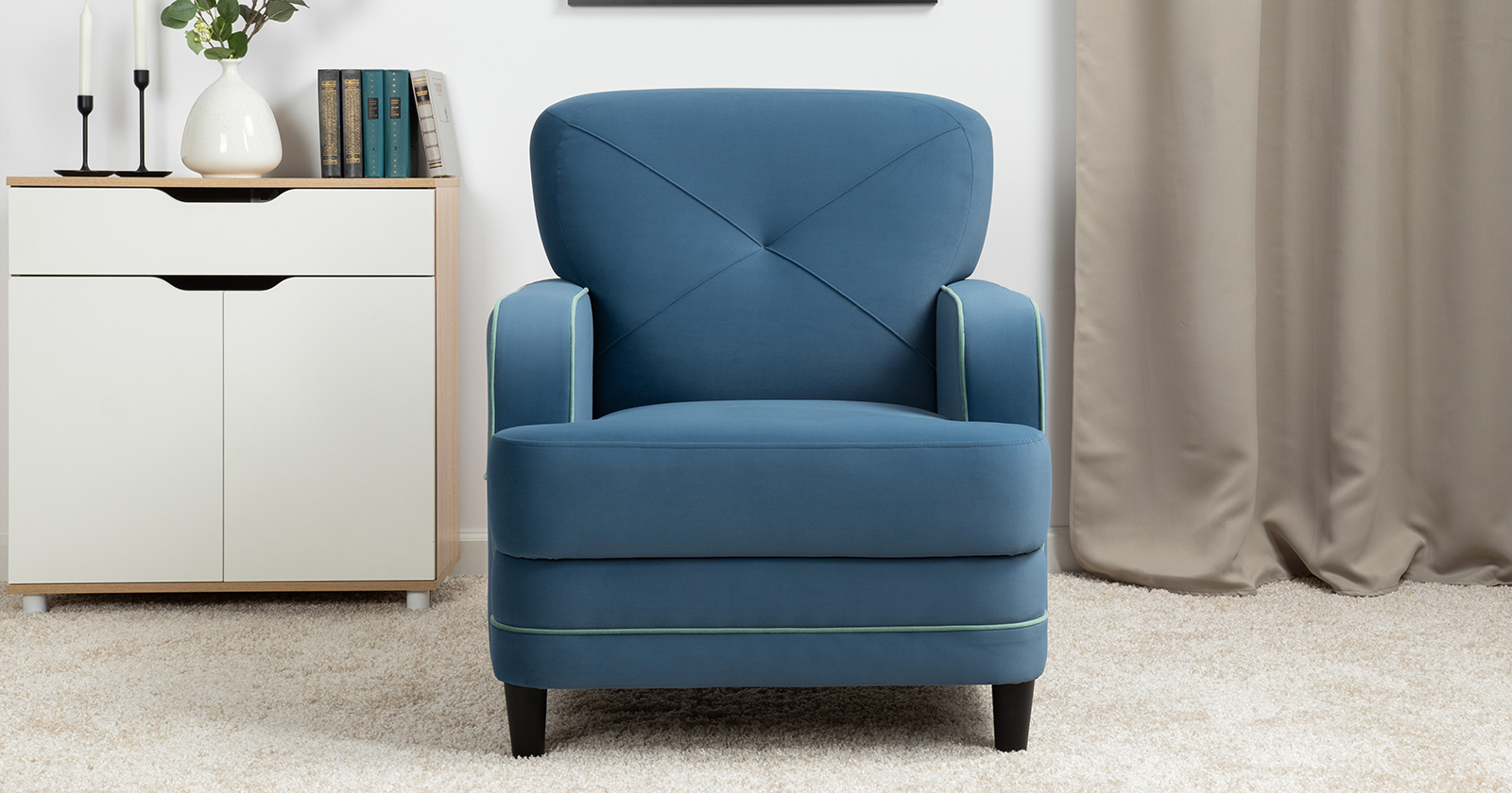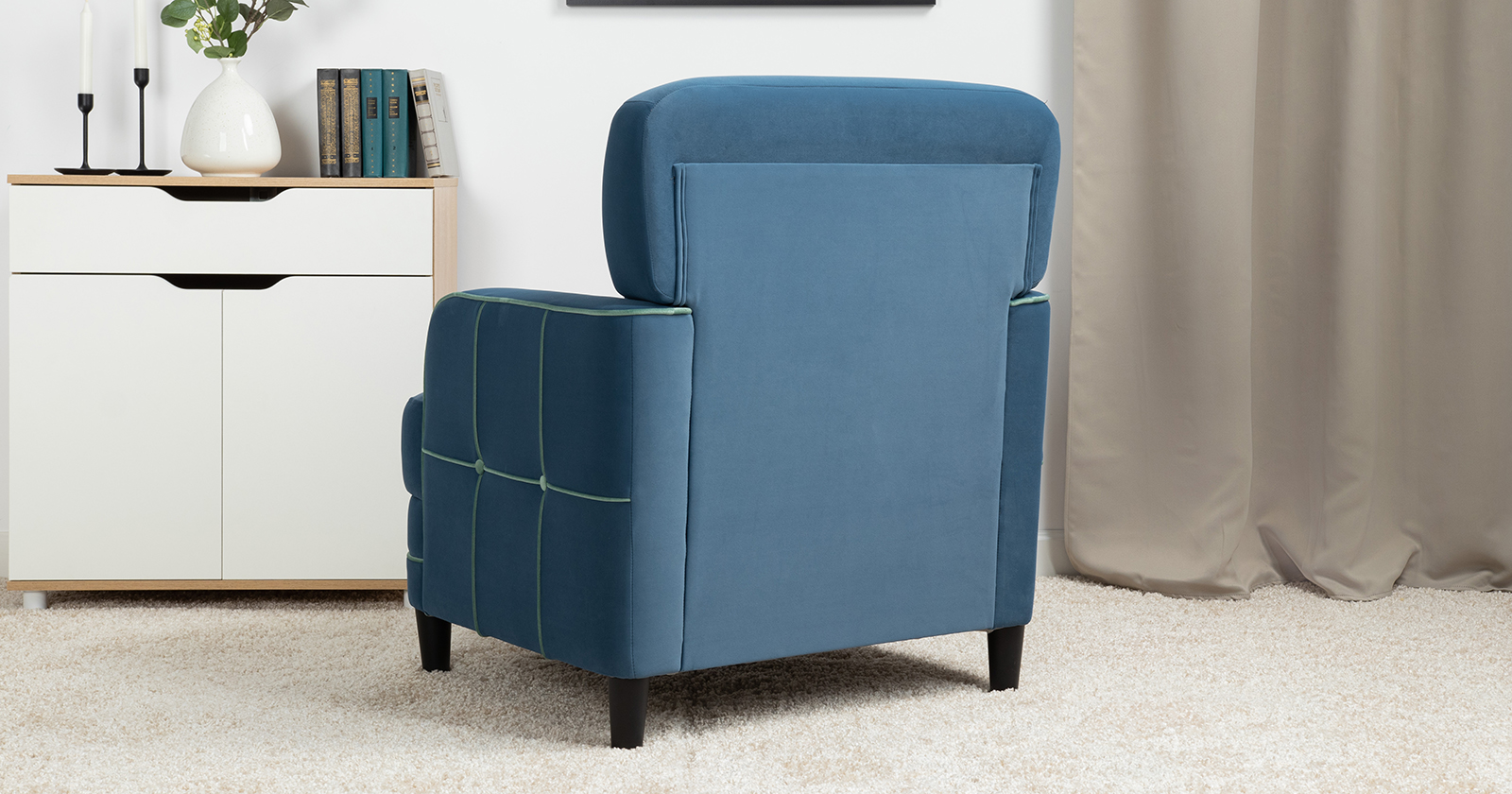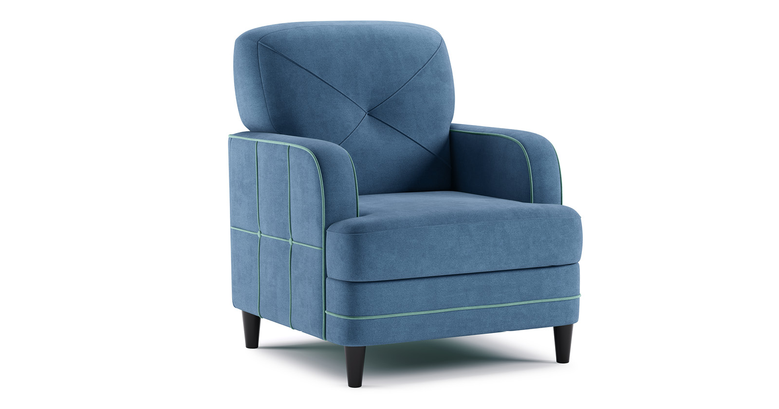 Кресло для отдыха Черри ТК 285 велюр Irida 07 синий, Эвита пистачио ментоловый