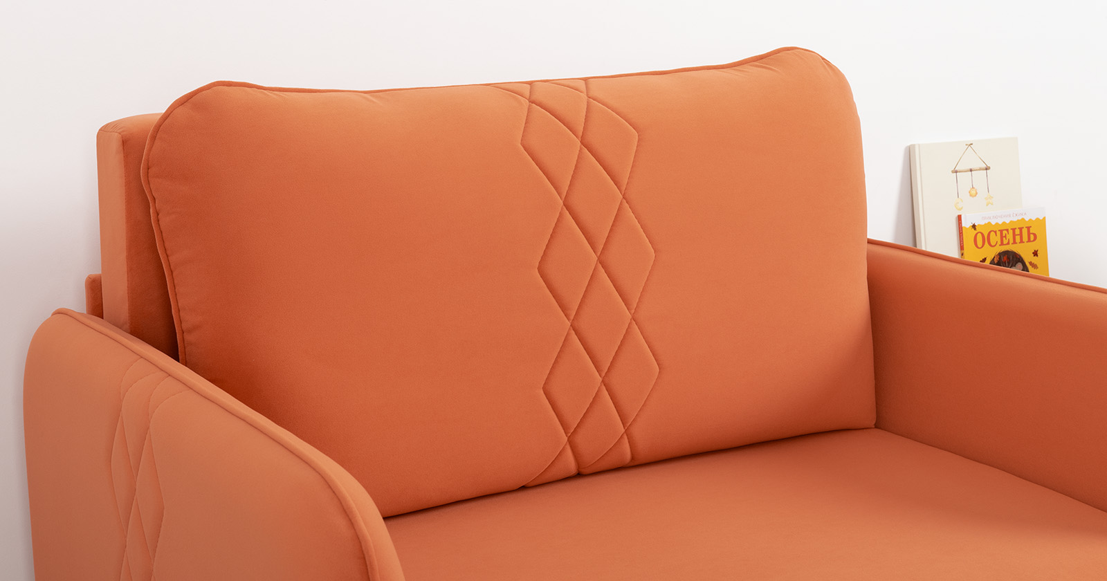 Стильный компактный диван для детской и гостиной. При своих скромных размерах он трансформируется в полноценное спальное место для детей и подростков. Лаконичный дизайн в виде декоративной стежки подчеркивает фактуру велюра, а небольшие размеры позволят разместить его в любом пространстве.