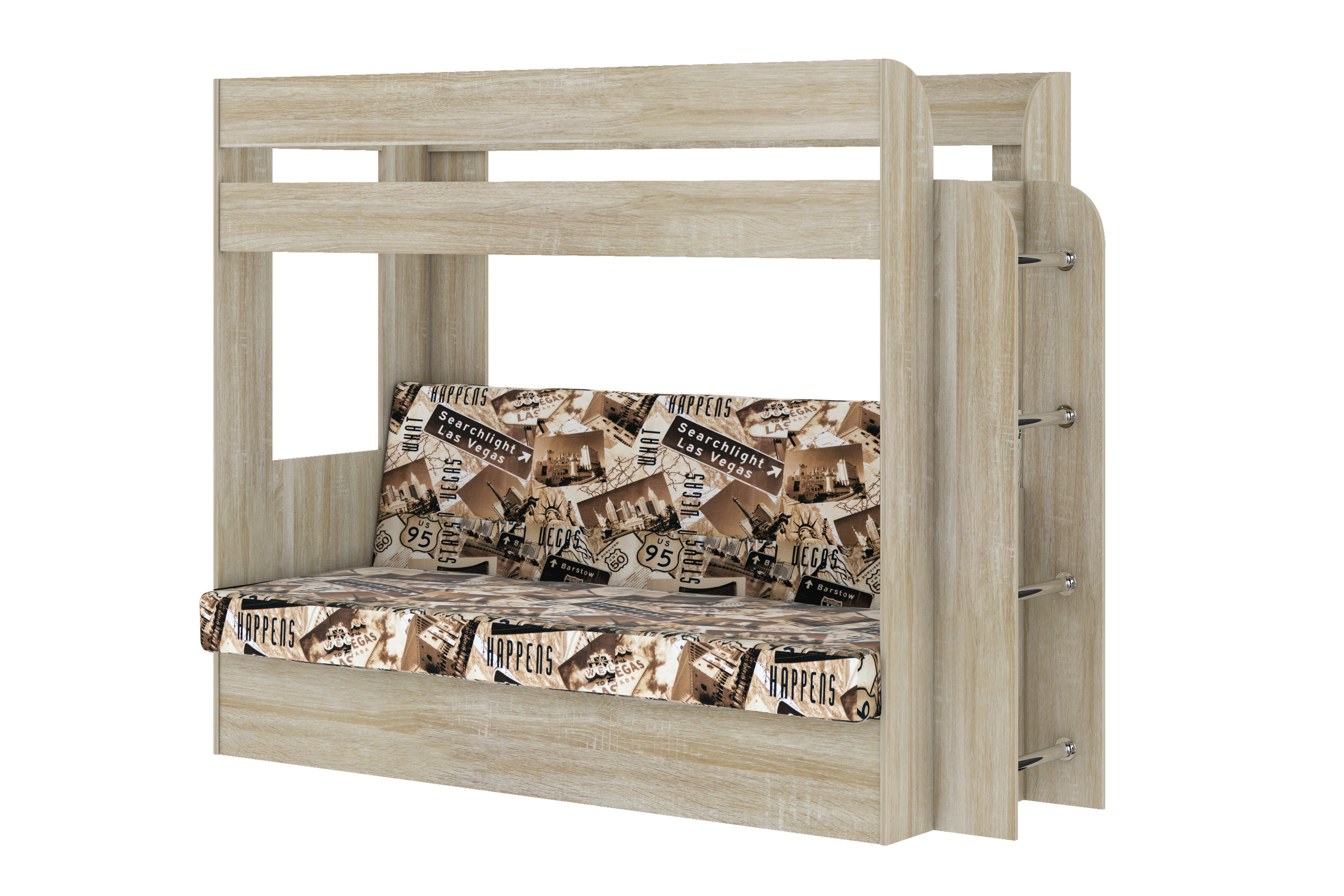 Кровать детская двухъярусная Карамель 75 Дуб Сонома, диван - велюр Лас Вегас (сборка на любую сторону) спальное место верх 80х190, низ 120х185