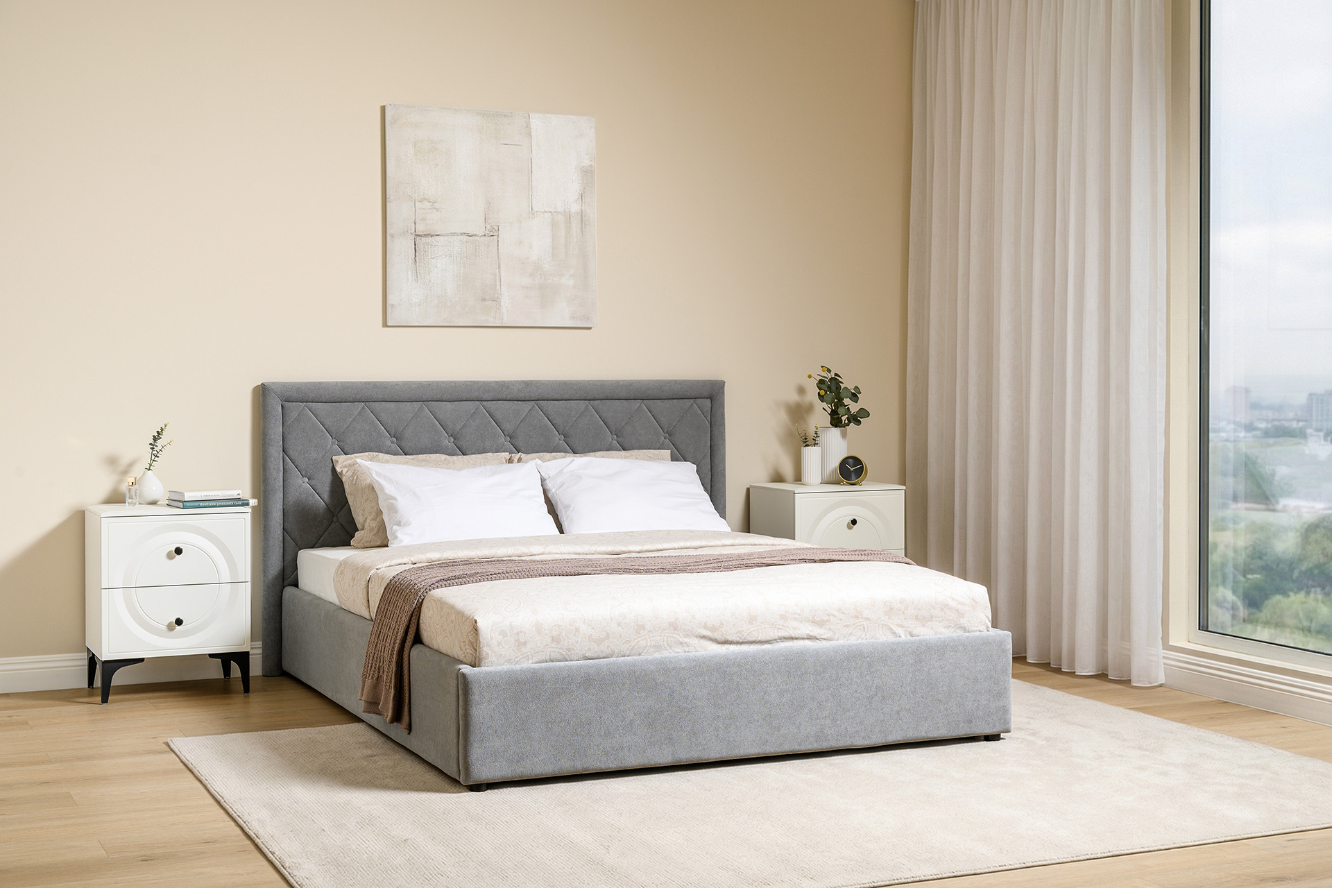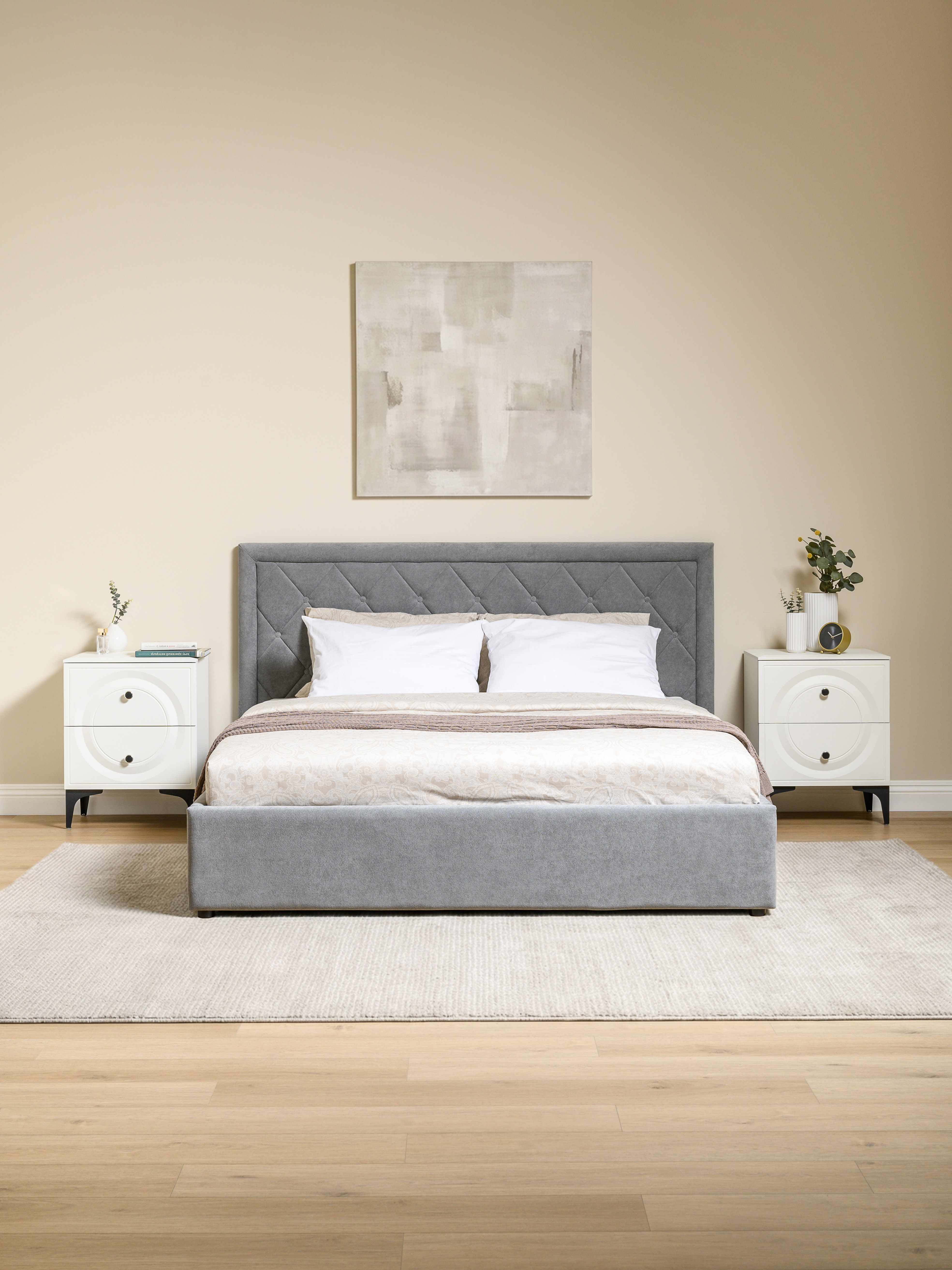 Кровать Марион — это идеальное сочетание стиля и комфорта. Элегантное изголовье оформлено стежкой в виде классической каретной стяжки, украшенной декоративными пуговицами, что придаёт изделию выразительный и утончённый вид. По всему периметру кровати проходит аккуратный валик, подчеркивающий геометрию и завершённость формы.
