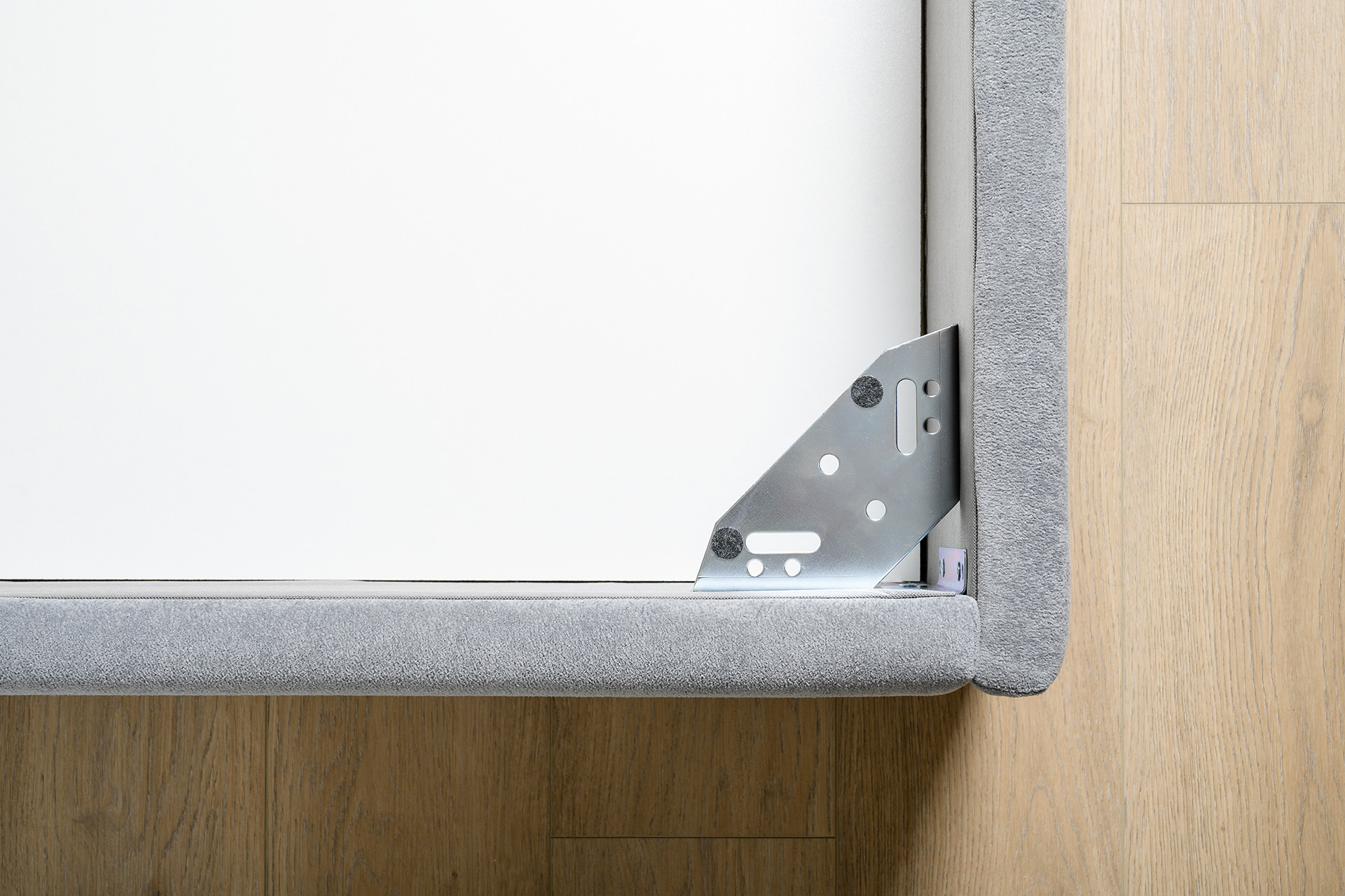 Основание кровати укомплектовано матрасодержателями. Жесткое кроватное дно из ЛДСП 16 мм на опорах 25 мм.