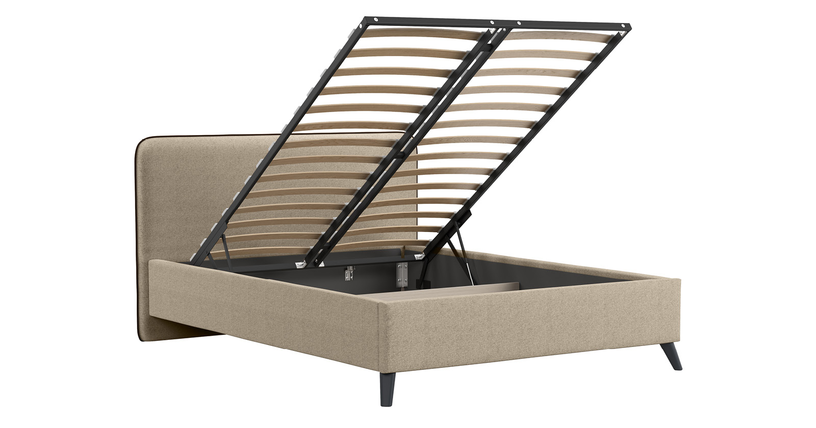Кровать Миа 160 рогожка светло-бежевый, кант желтовато-коричневый с ортопедическим основанием и подъемным механизмом