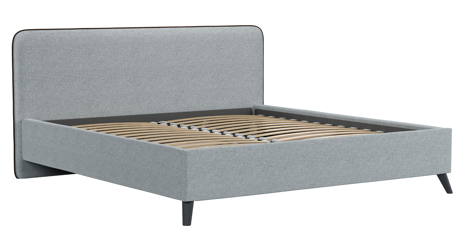 Cкругленный торец изголовья оформлен контрастным кантом.
