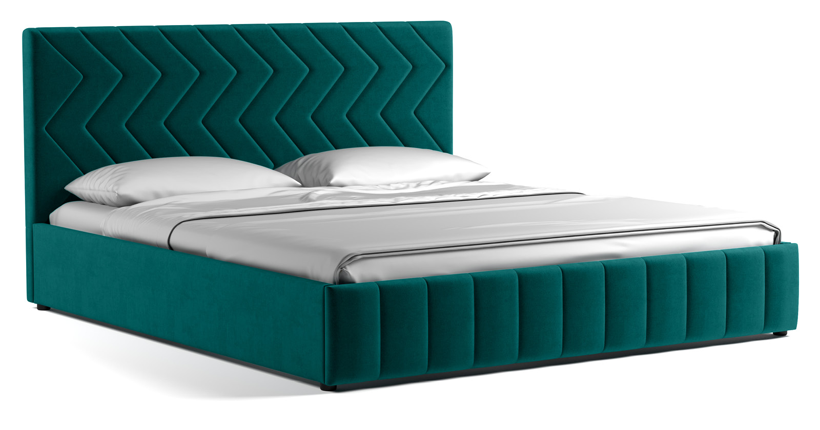 Кровать Милана 160 велюр сине-зеленый с ортопедическим основанием и подъемным механизмом