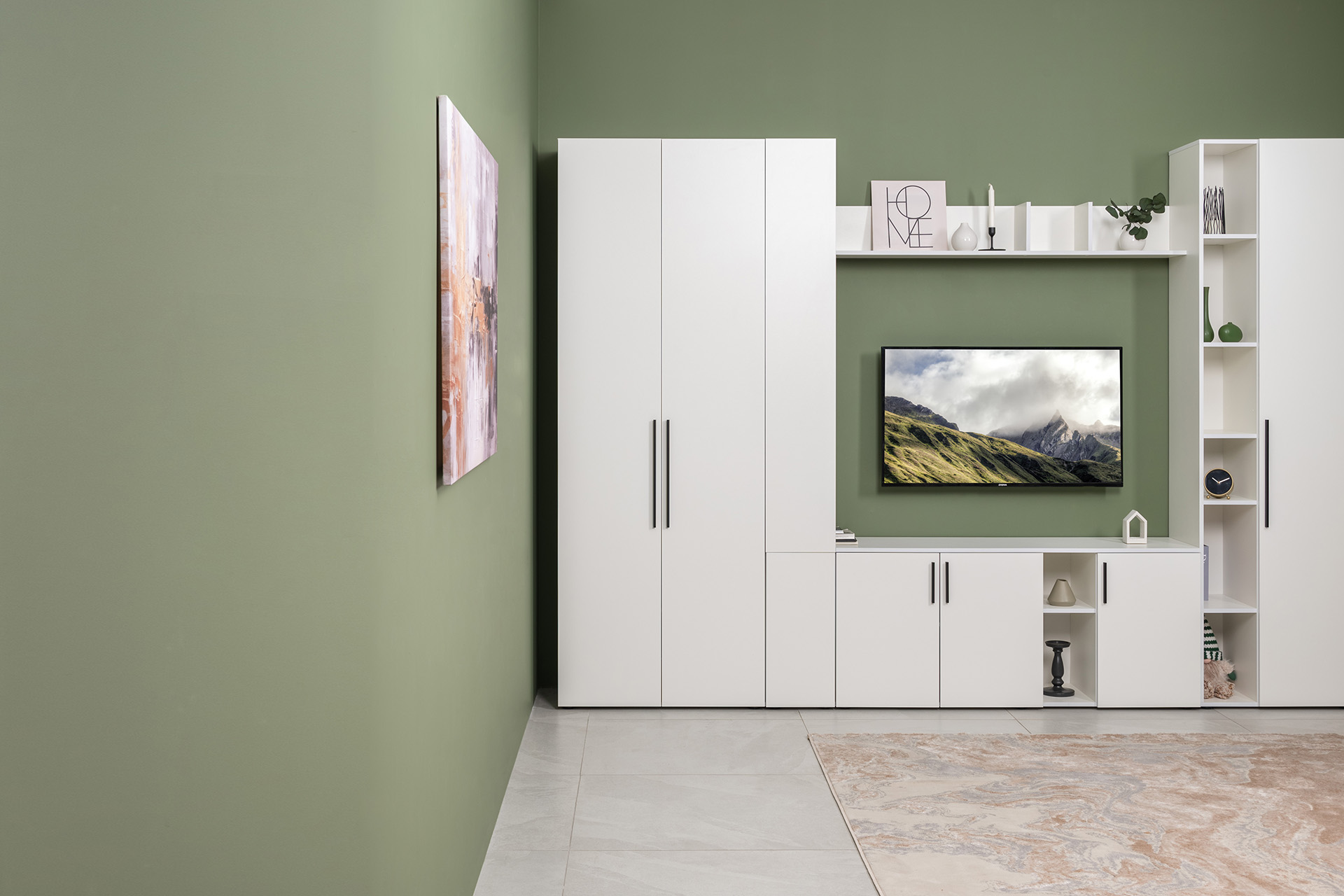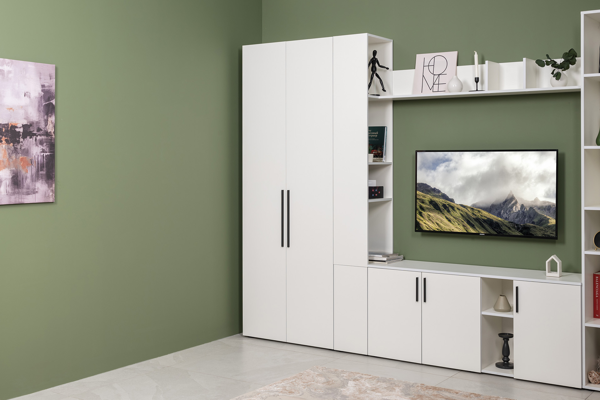 Тумба под ТВ Эйр 16.55 белый PE шагрень, собирается на любую сторону