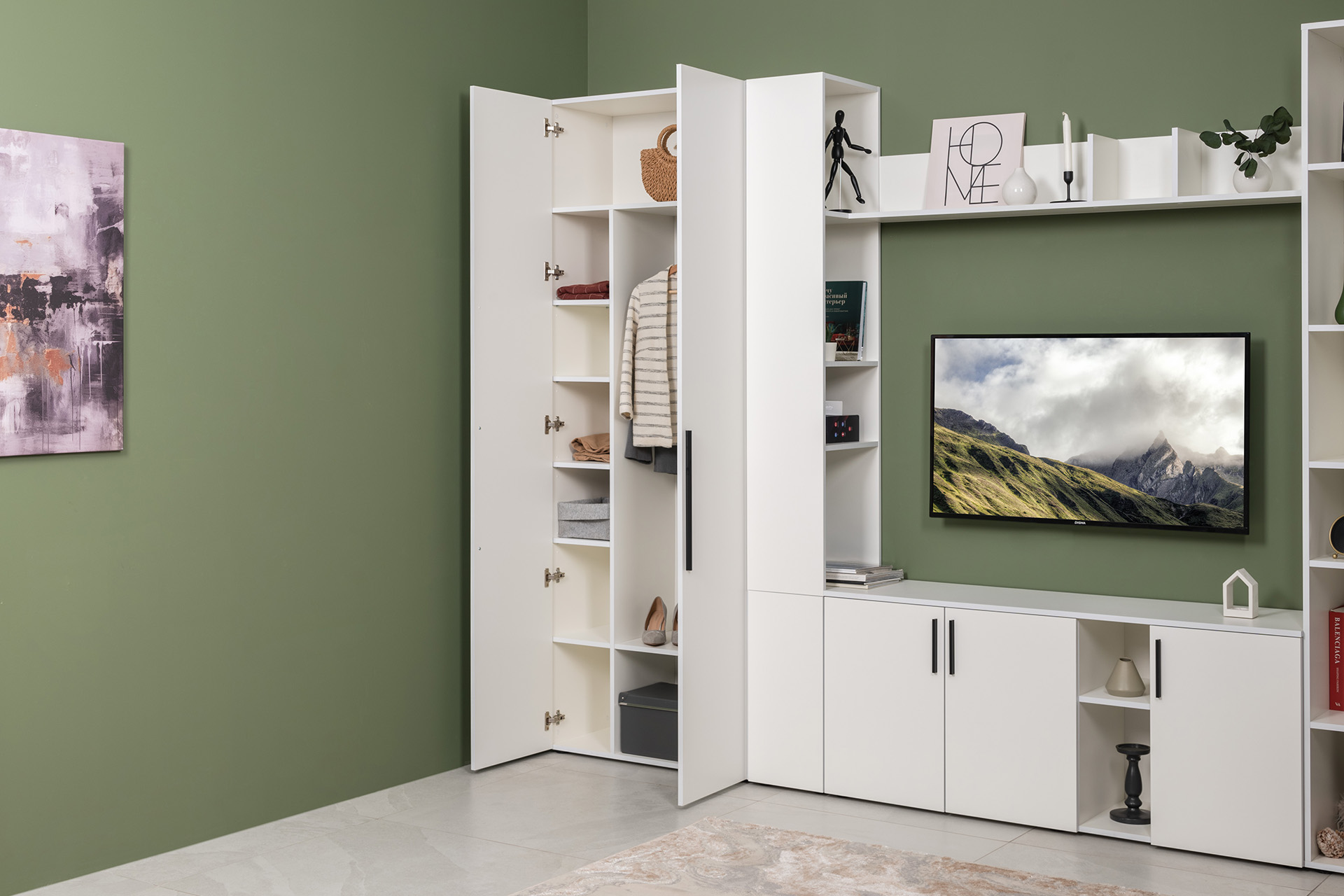 Шкаф для одежды Джастин 13.339 белый PE шагрень, дуб белый exclusive OW D4430