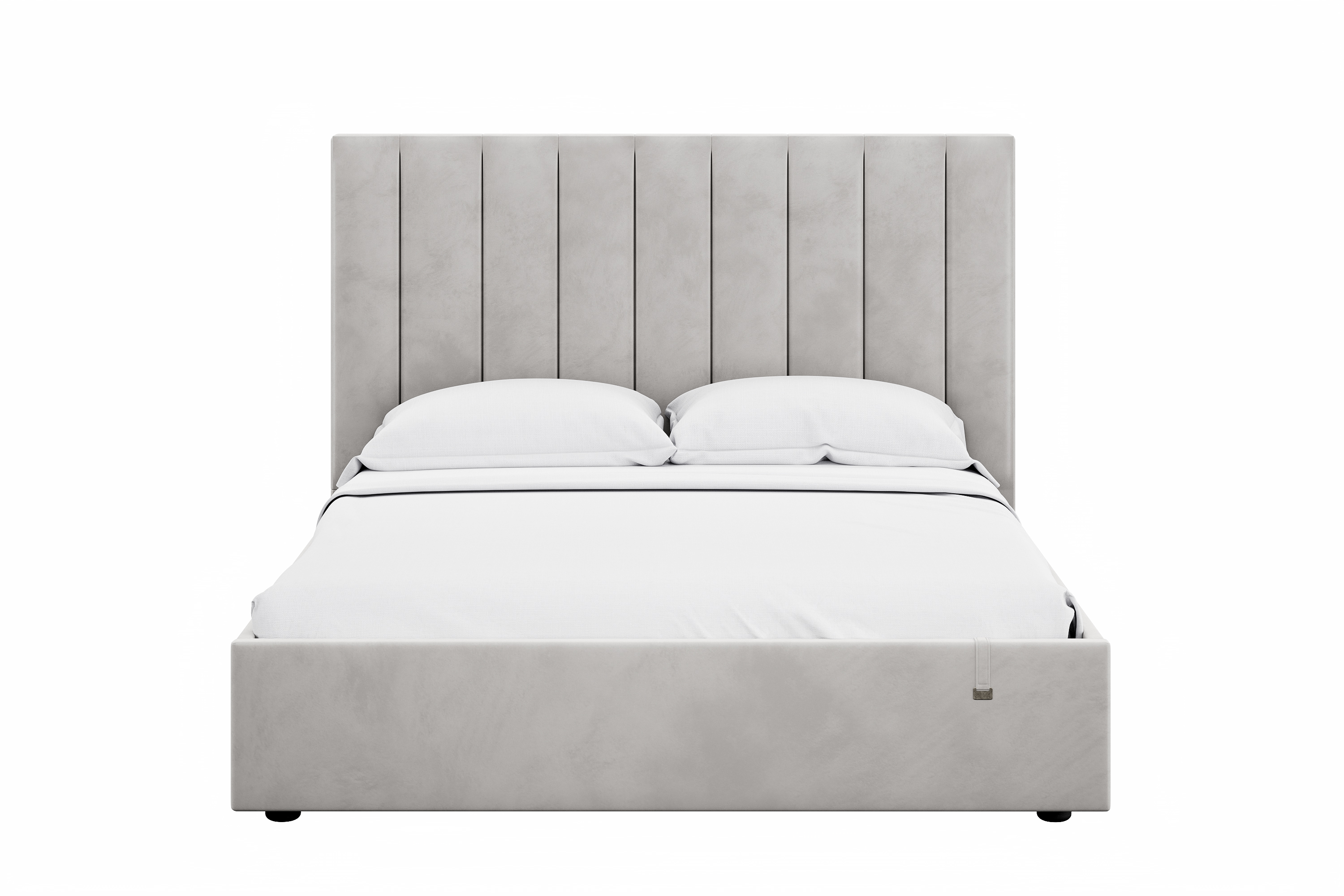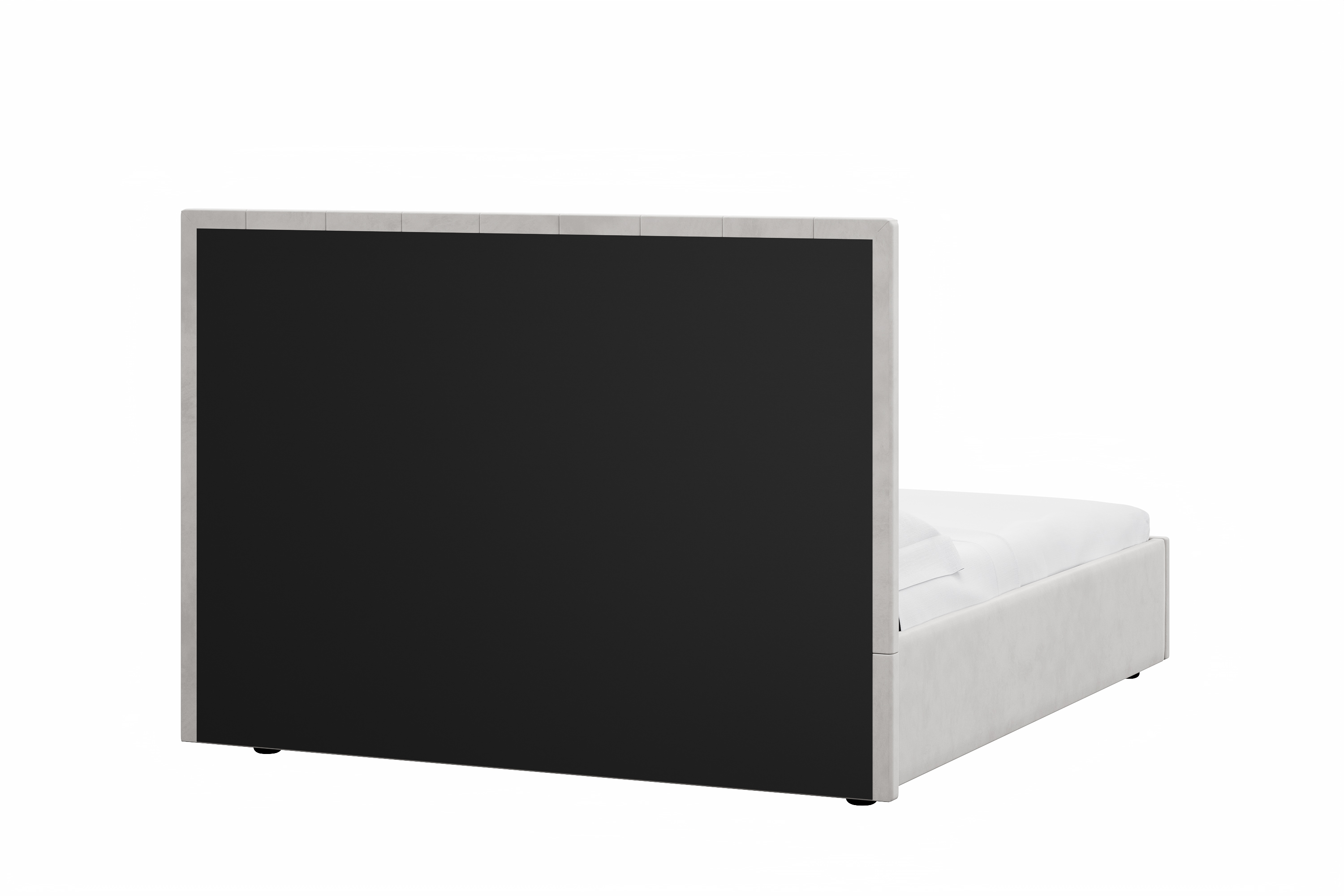 Спальня Дакота композиция 1 меренга, белый, с кроватью Ингрид/Ingrid 160 велюр ультра смог/ultra smoke, пуф Альба 450 велюр ультра смог/ultra smoke