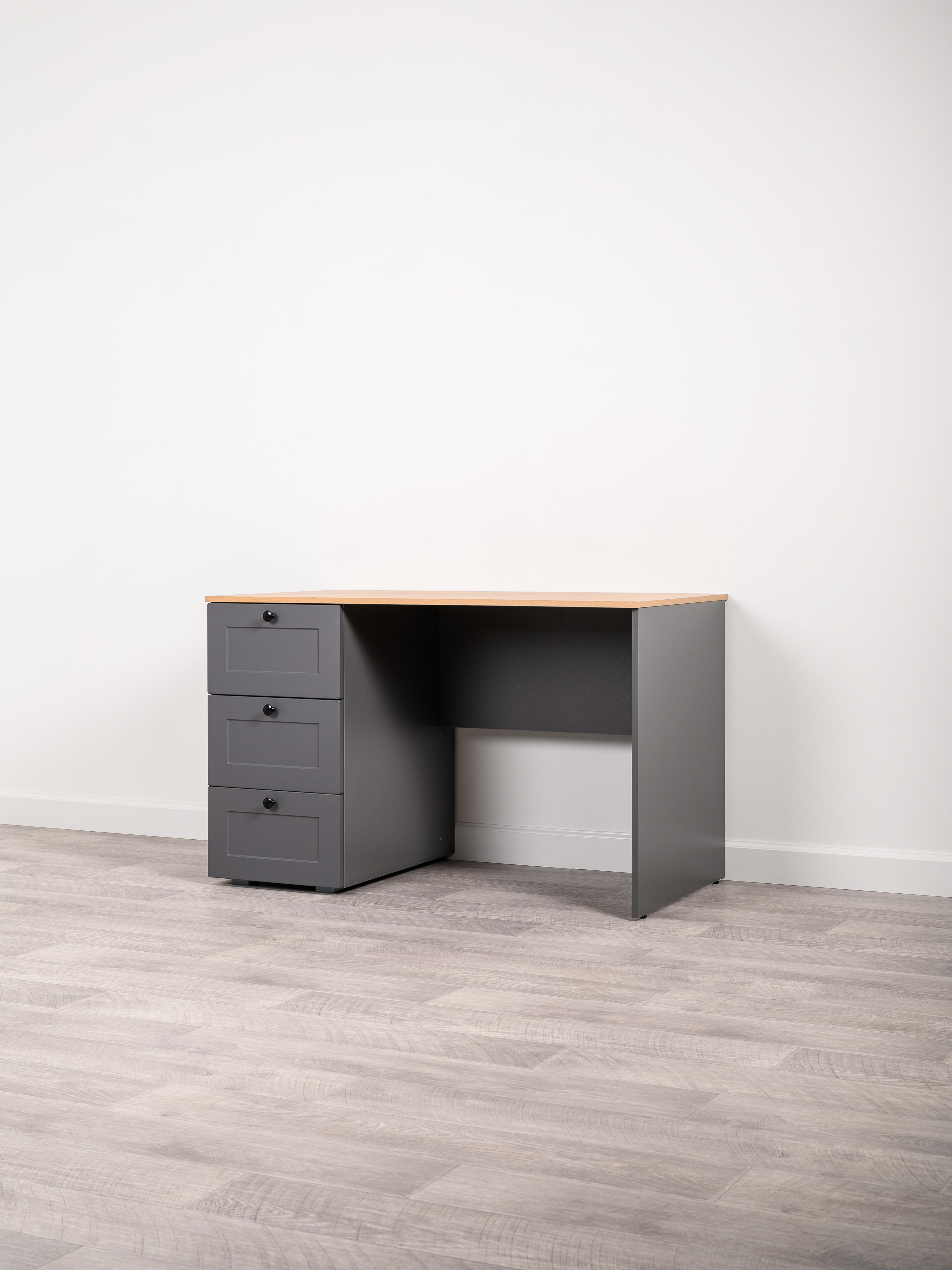Стол письменный Остин 12.159 серый графит 0162 РЕ, дуб золотой CRAFT, графит ZB 856-2 ПВХ, сборка на любую сторону