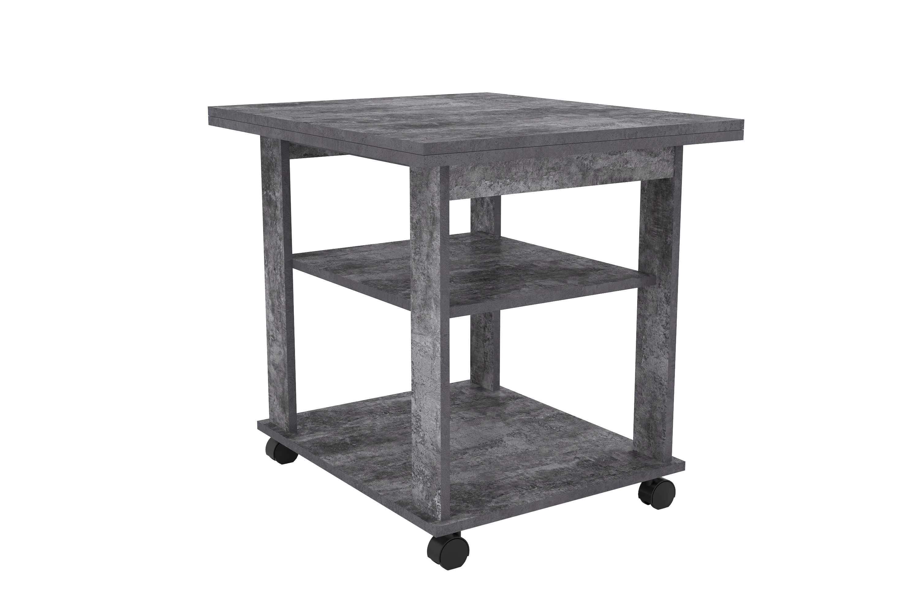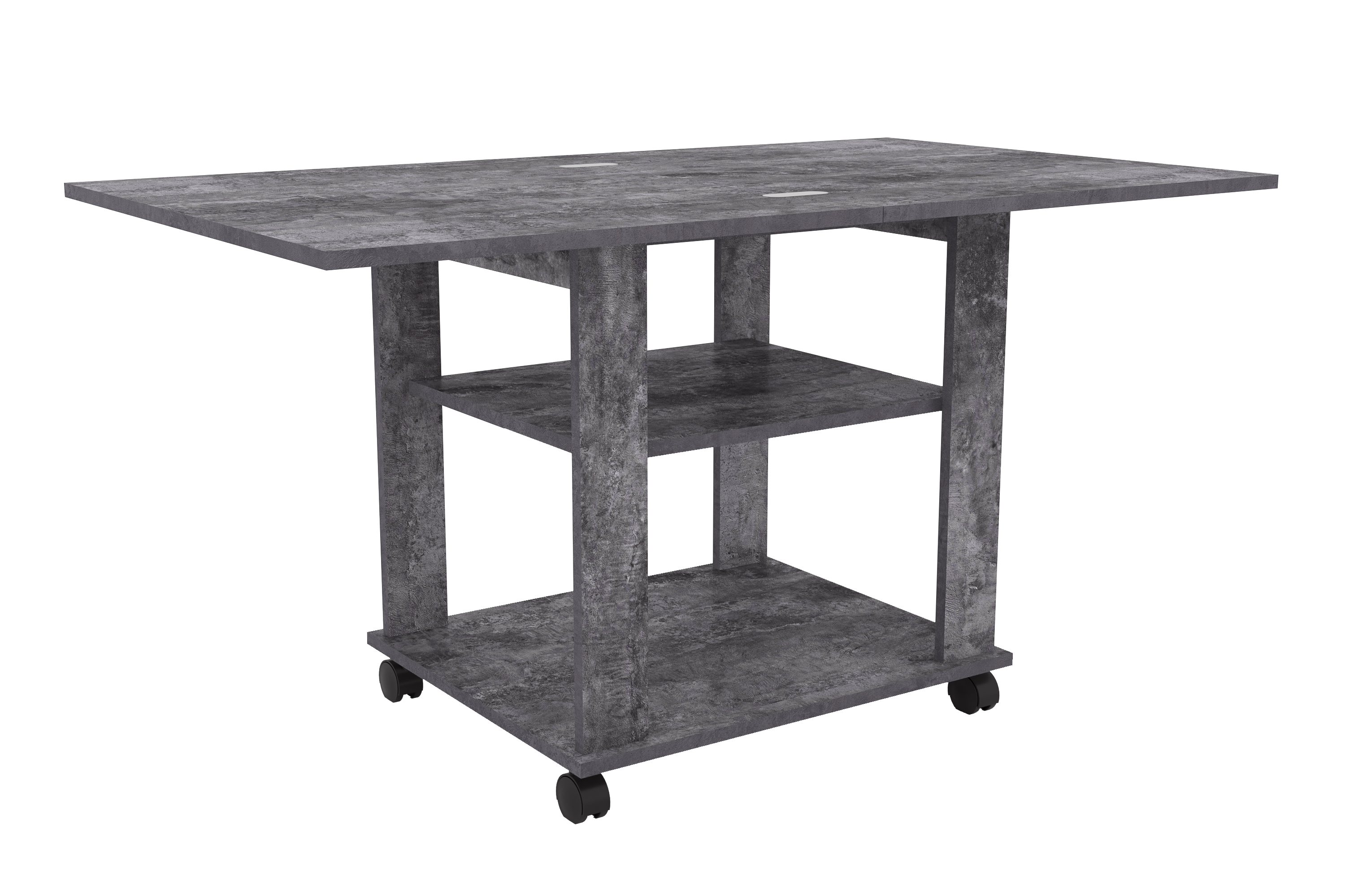 Благодаря поворотному механизму и подвижному соединению столешниц его можно раскладывать для увеличения площади. Если планируется частое использование мебели в различных комнатах, то колеса облегчат перемещение. Все механизмы конструкции обладают простым использованием.
