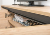 ЛДСП 18 мм. Кромка ABS 1 мм. Распашные фасады на четырехшарнирных петлях. Опоры металл, цвет черный. Профиль: алюминиевый анодированный, цвет черный матовый. Подготовка для подключения мультимедиа техники.